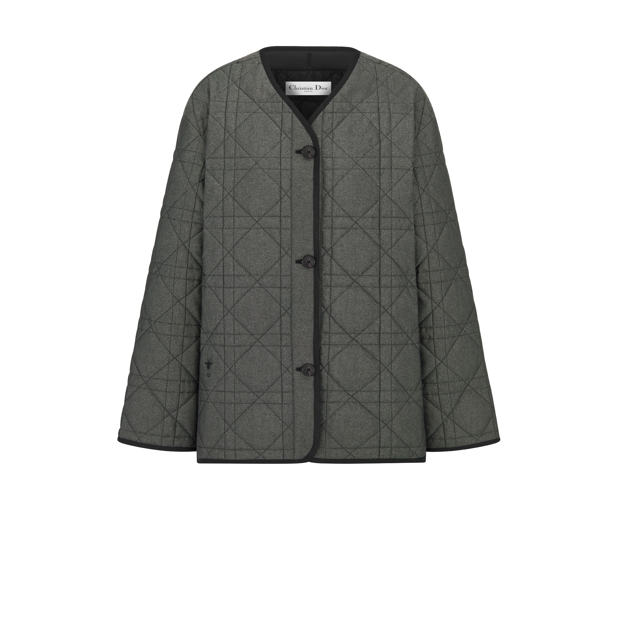 灰色层次色调牛仔效果绗缝塔夫绸科技面料超大藤格纹图案