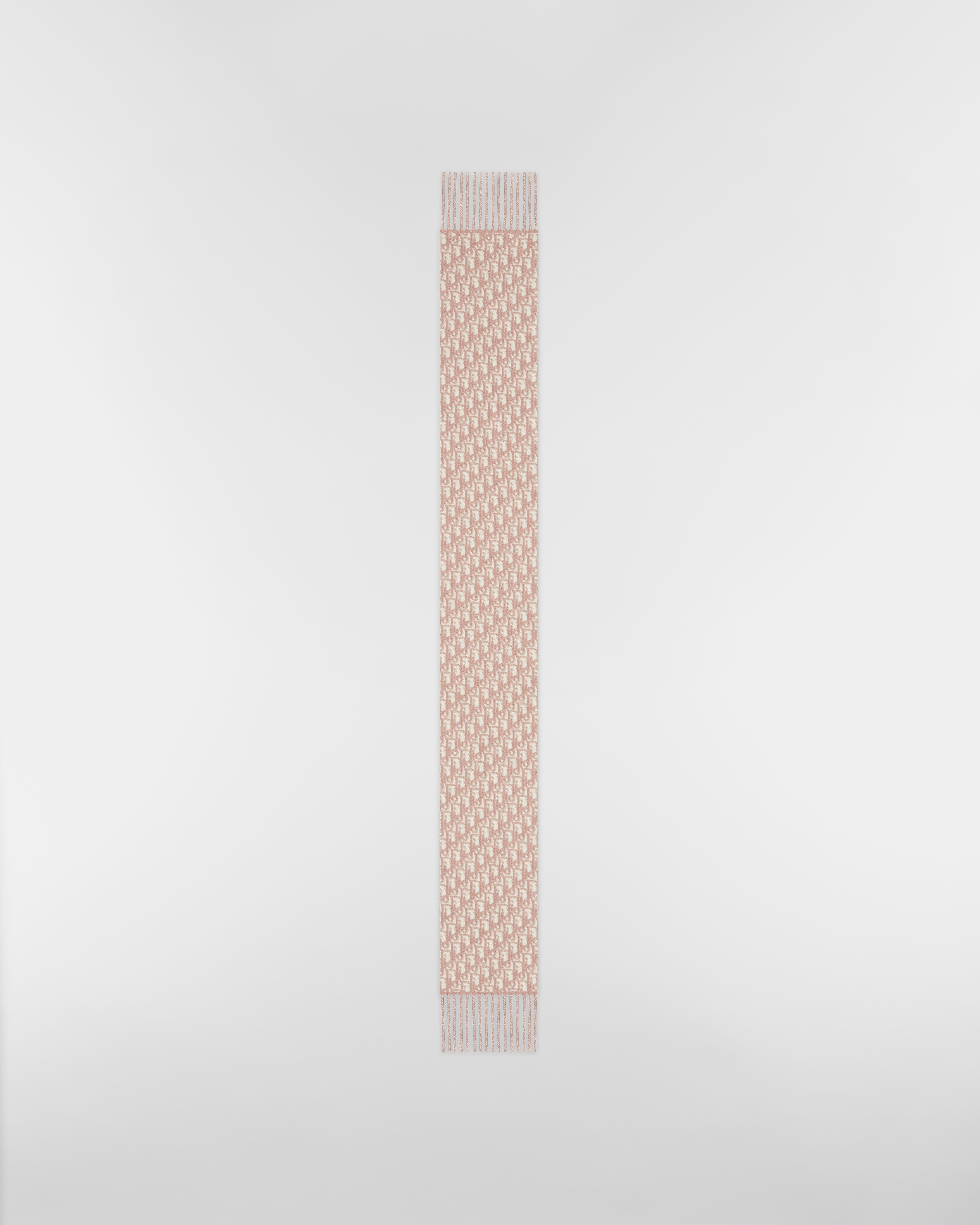 这款围巾是二零二六早春成衣系列新品,饰以 Oblique 印花,突显 Dior 于 1969 年推出的经典图案。采用玫瑰粉色山羊绒面料精心制作,双面设计,一面为纯色,另一面饰以 Oblique 印花。可围系在颈部,或披在肩部。
