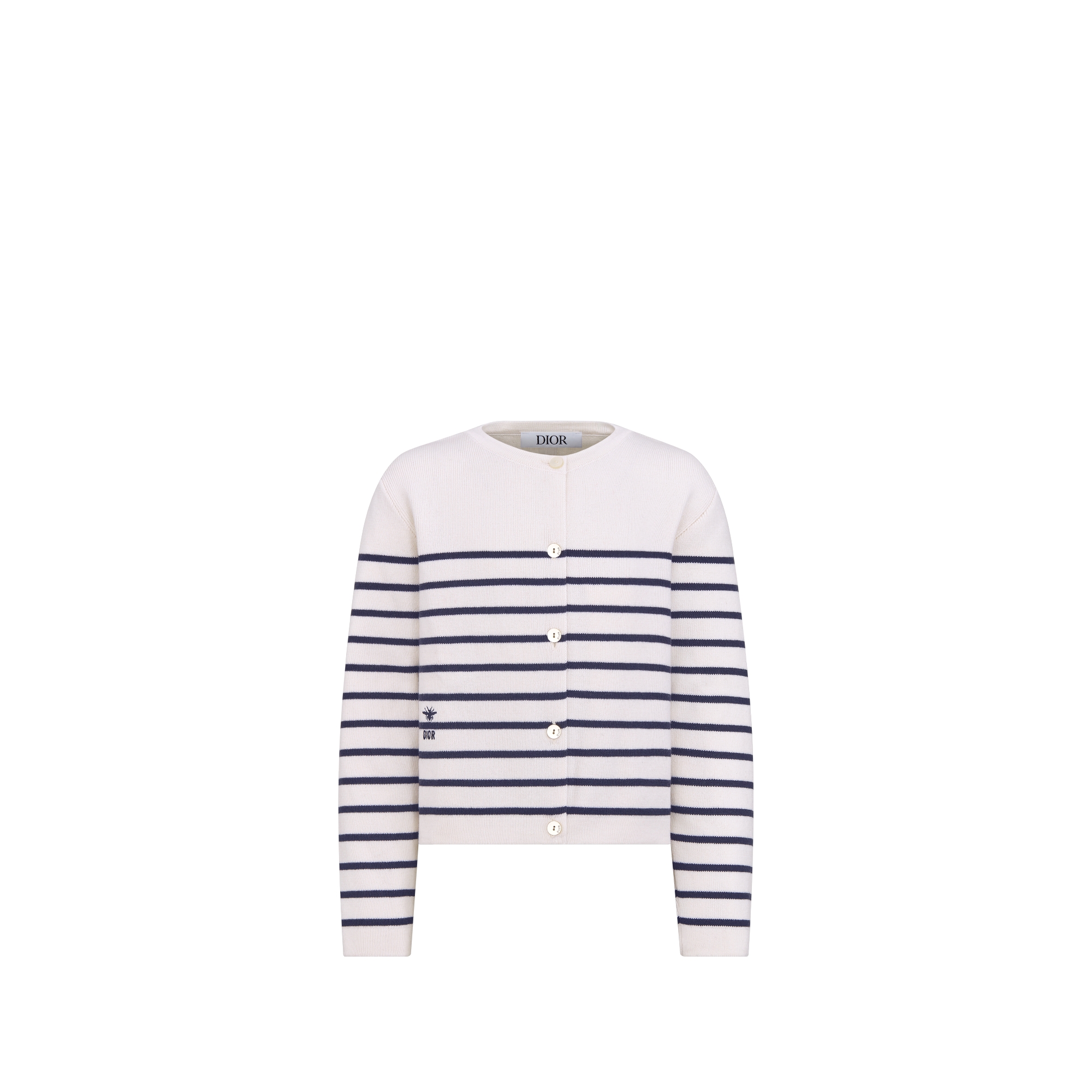 象牙色棉质混纺针织面料海军蓝色条纹图案