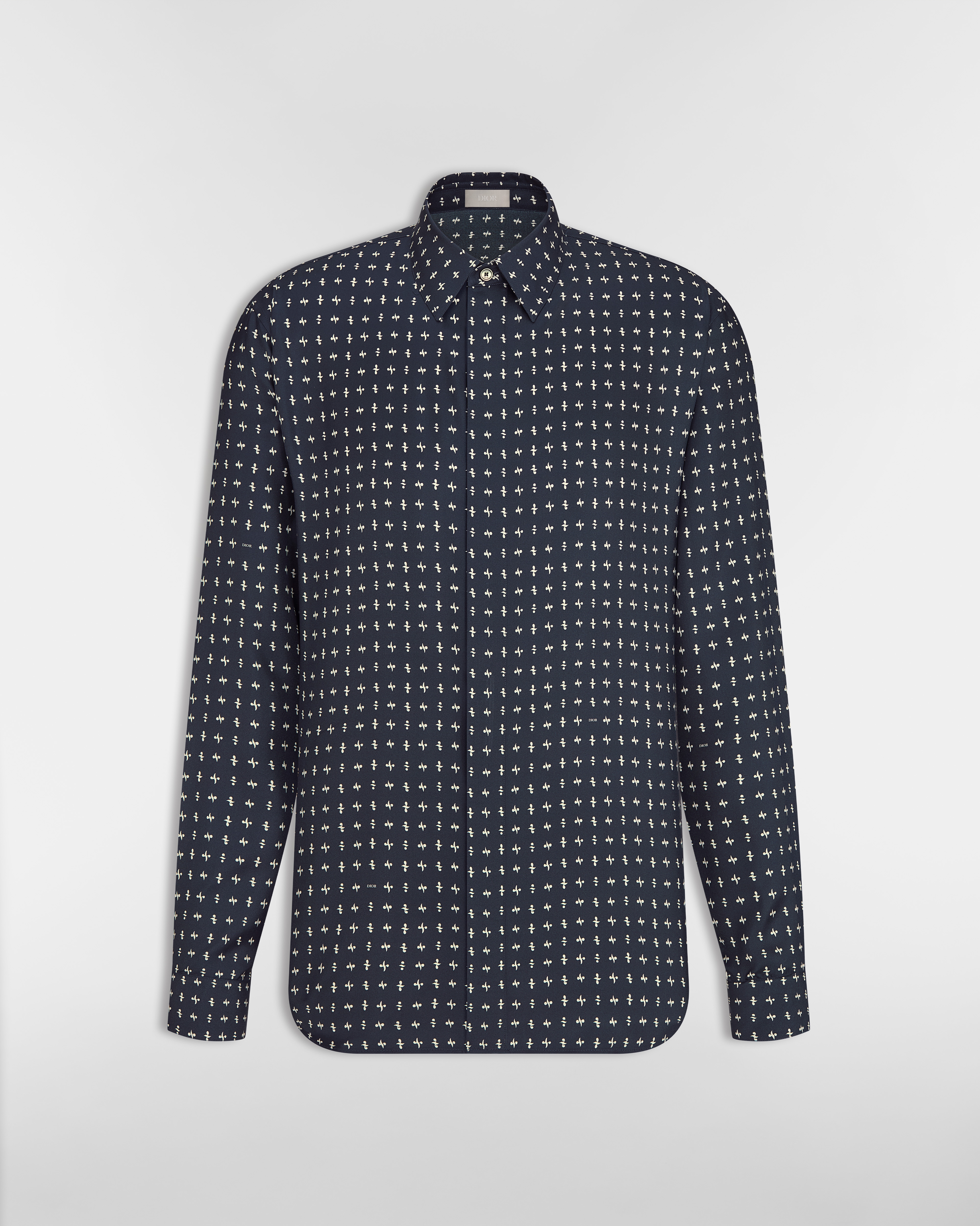 蓝色桑蚕丝斜纹面料 Monsieur Dior 图案