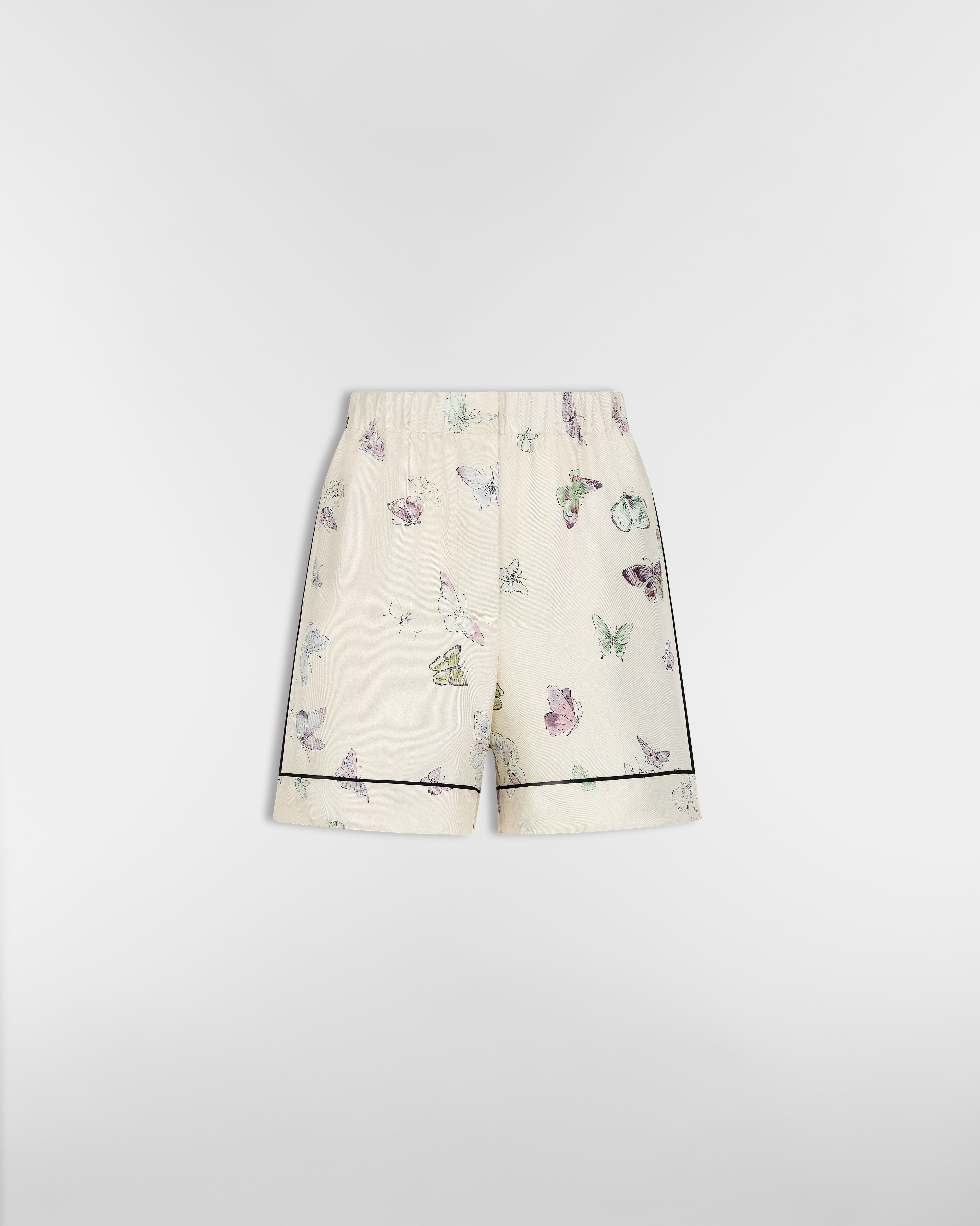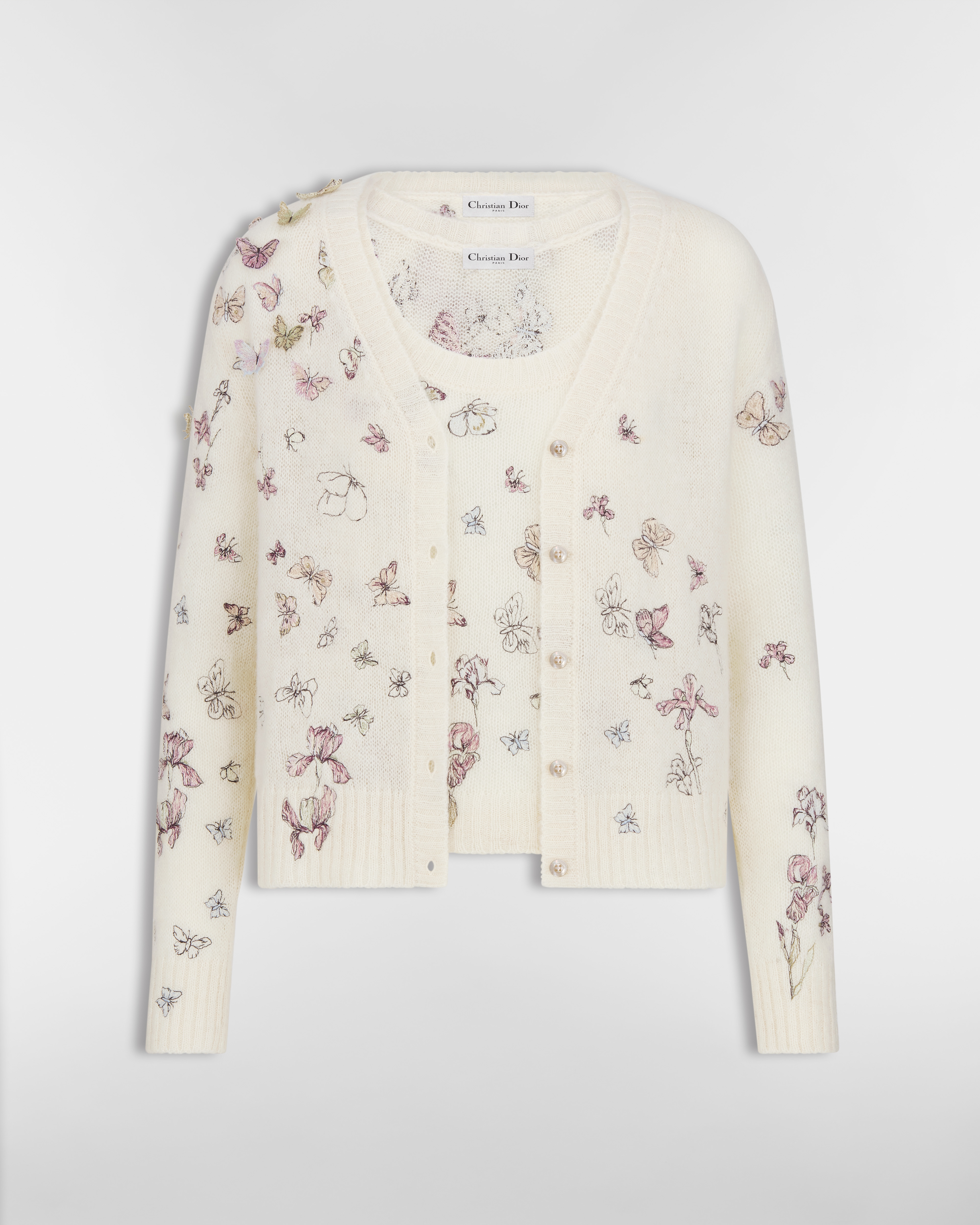 白色羊驼毛、山羊绒和桑蚕丝混纺针织面料多色 Butterflies & Iris 图案