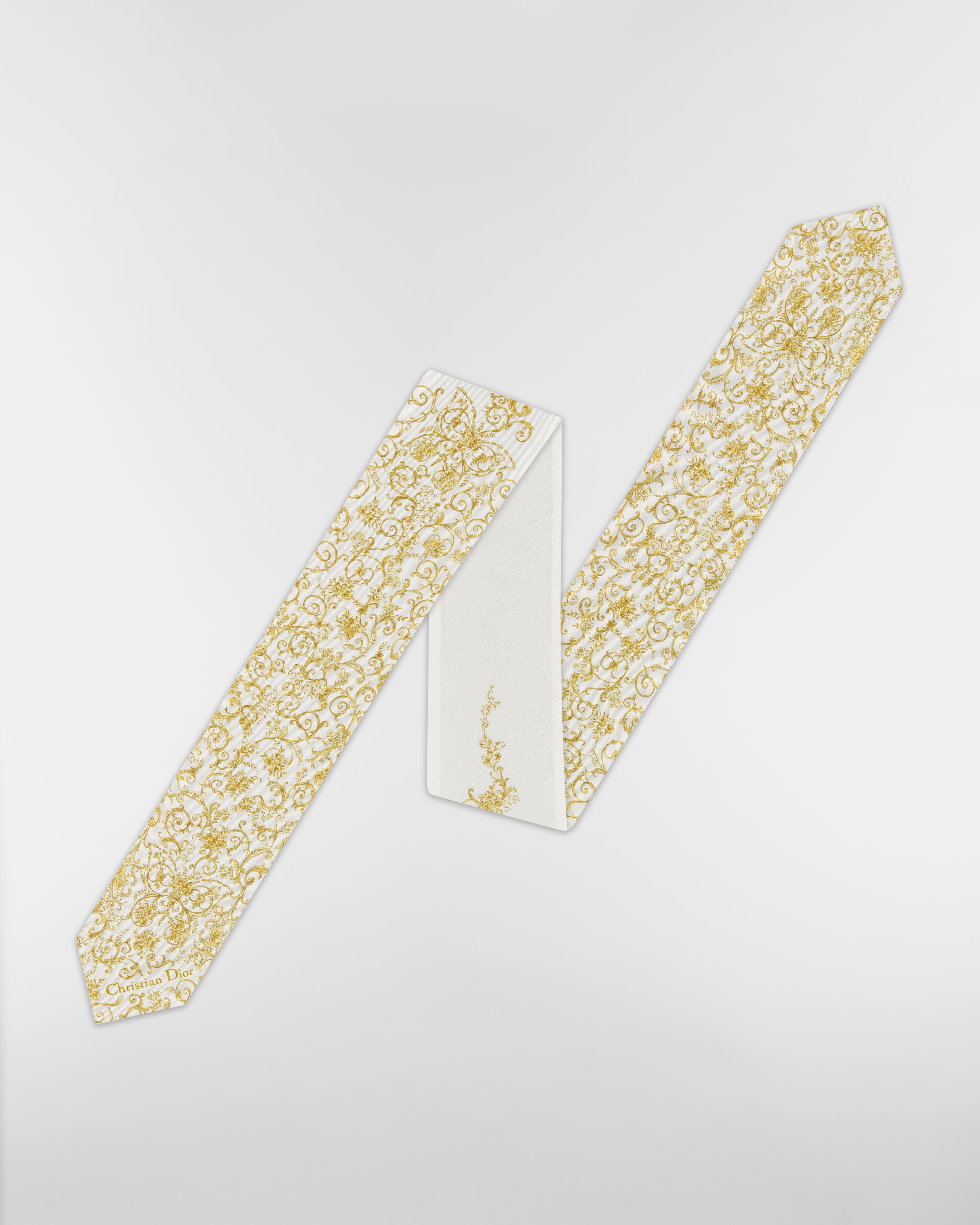 白色和金色调桑蚕丝斜纹面料 Dioresque Butterfly 图案