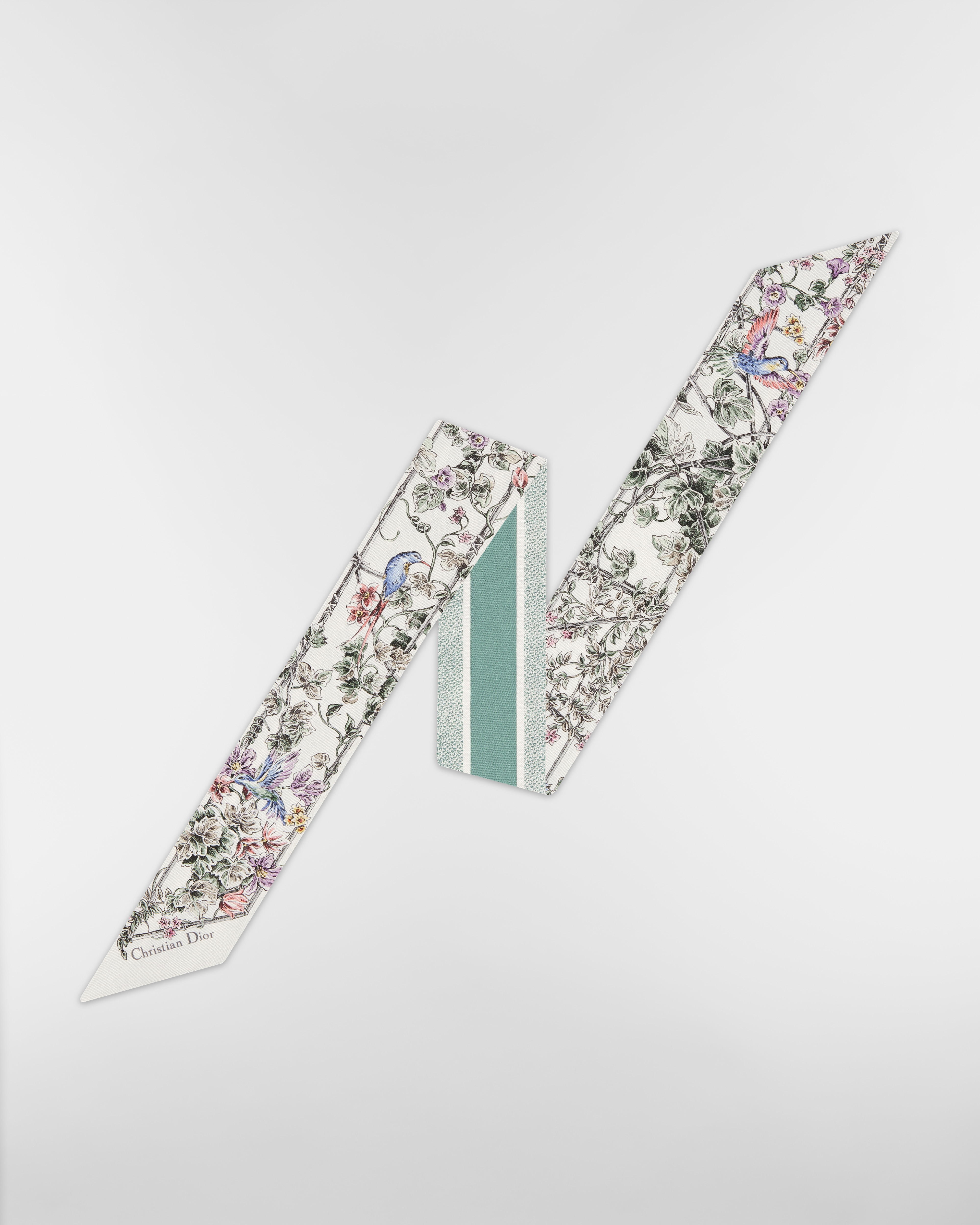 •  白色和蓝色桑蚕丝斜纹面料 Jardin D-Étoile 图案