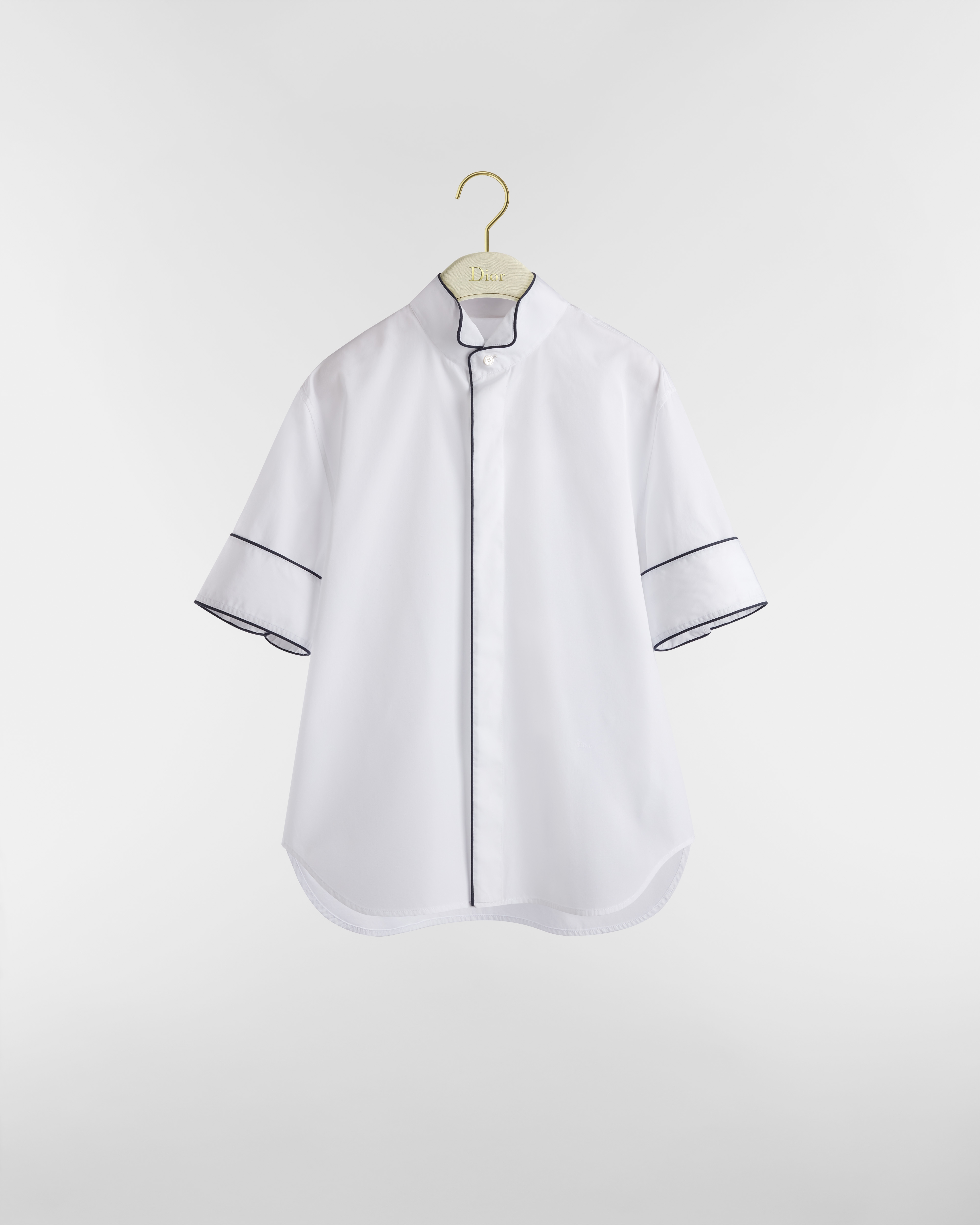 这款衬衫是乔纳森·安德森 (Jonathan Anderson) 为 Dior 打造的首个系列的标志单品,重新诠释时尚廓形。采用白色棉府绸面料精心制作,短款常规版型,搭配海军蓝色绲边,突显燕子领、短袖和隐藏式纽扣开合提升格调。可搭配各式休闲高雅的造型,更显精致。