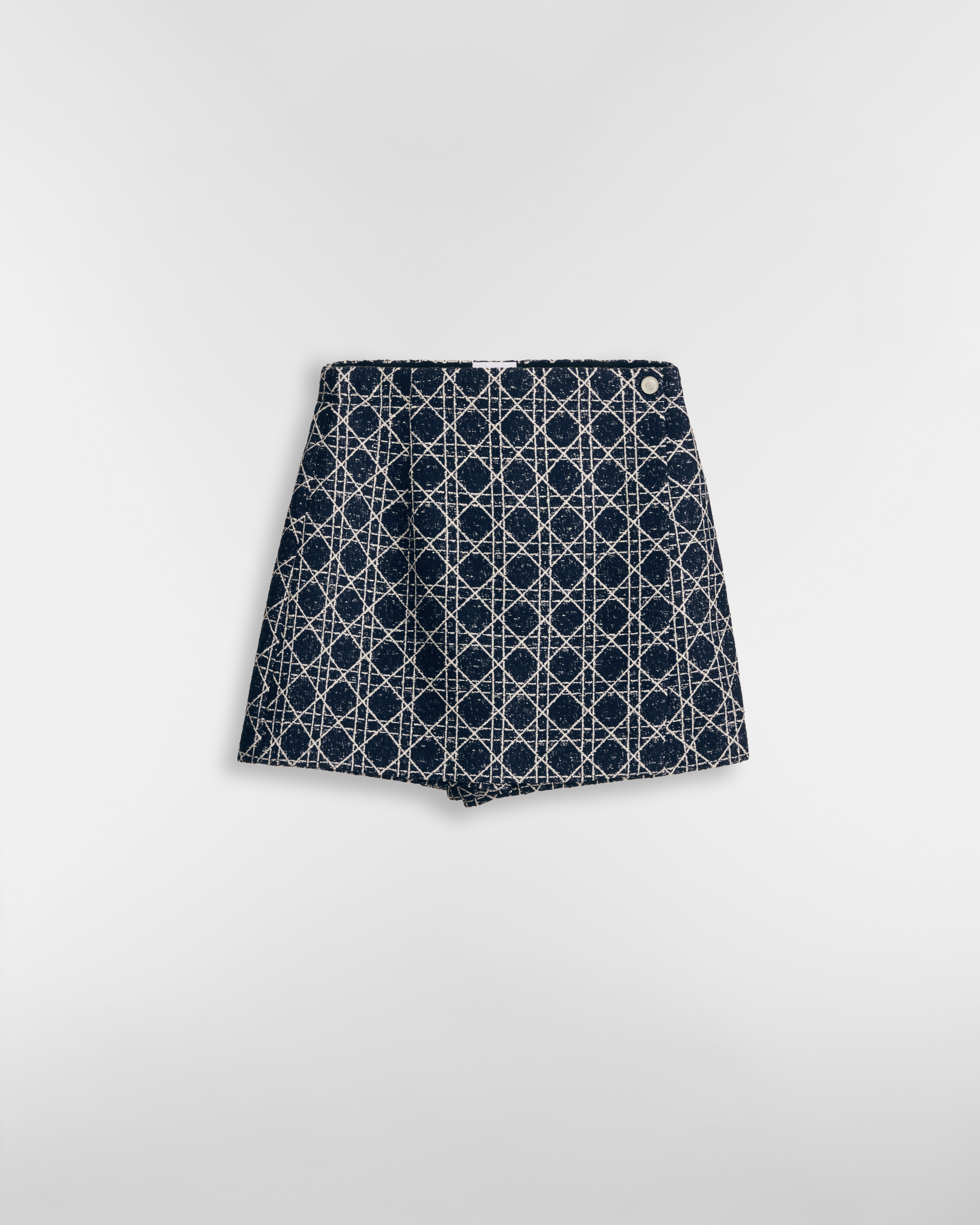 海军蓝色和米白色粗花呢面料超大藤格纹