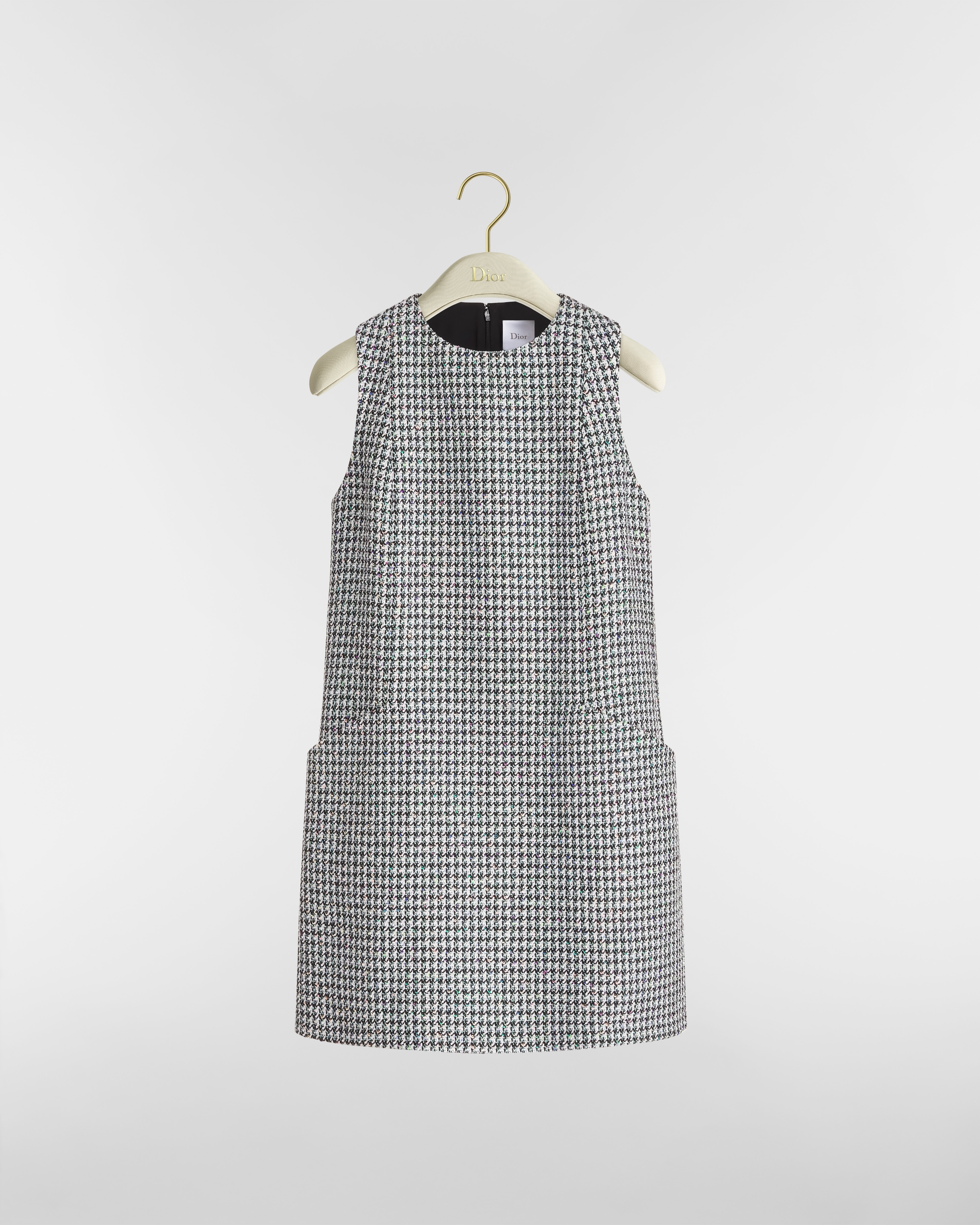 黑色和白色绵羊毛混纺面料千鸟格纹搭配多色亮片