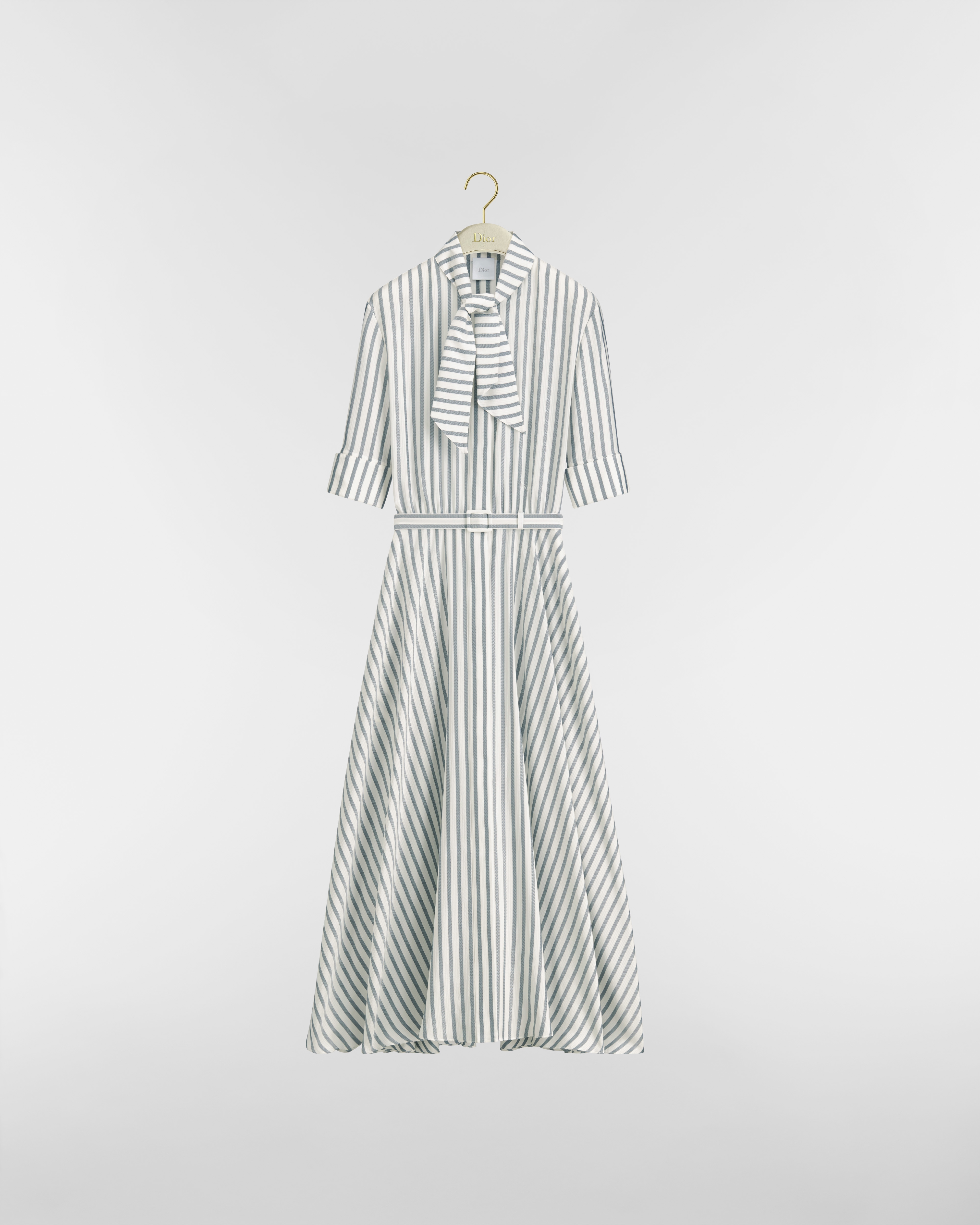 灰色和白色桑蚕丝提花面料 D-Stripes 图案搭配腰带