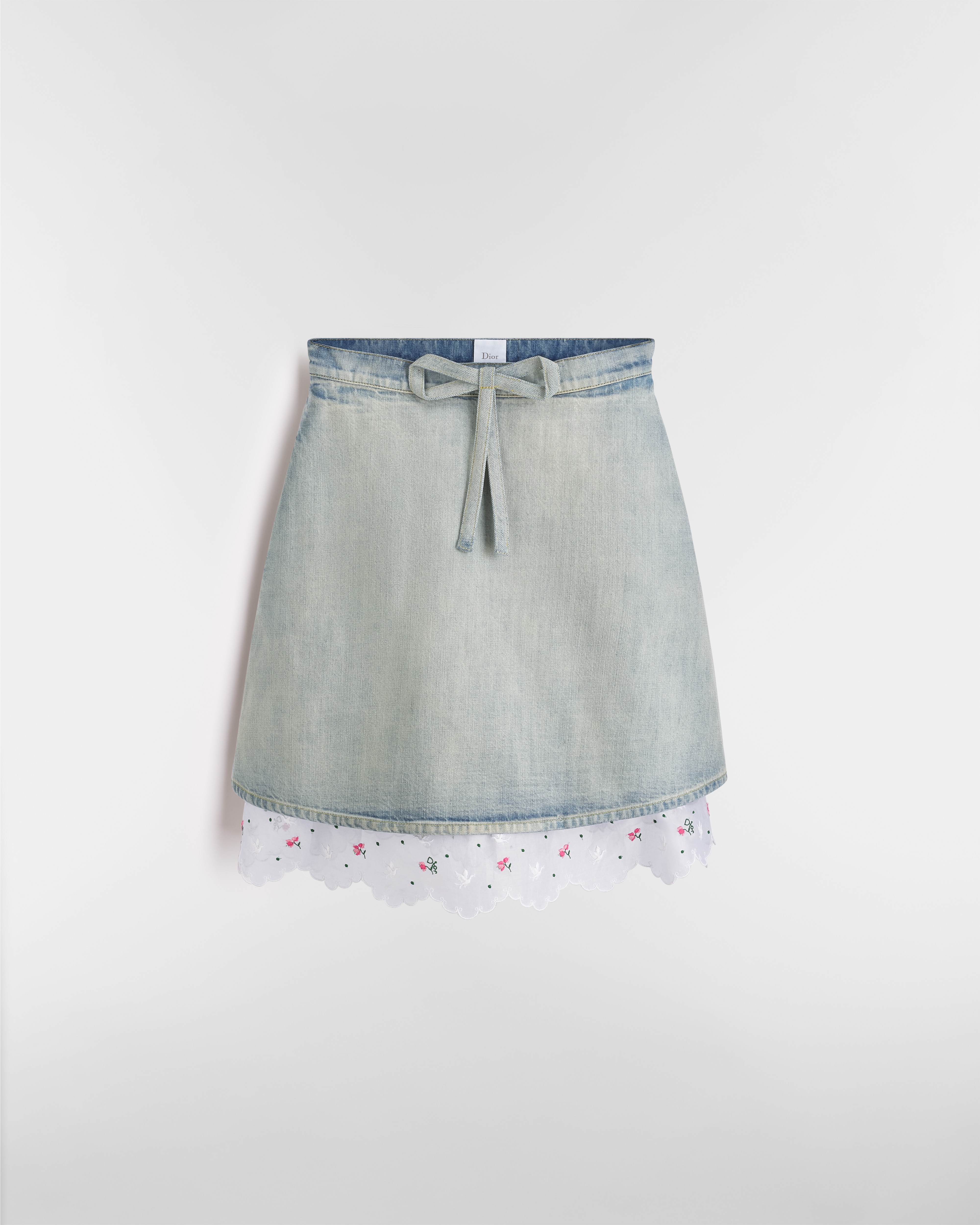 蓝色石洗棉质牛仔布绿色 Dior Clover 图案刺绣