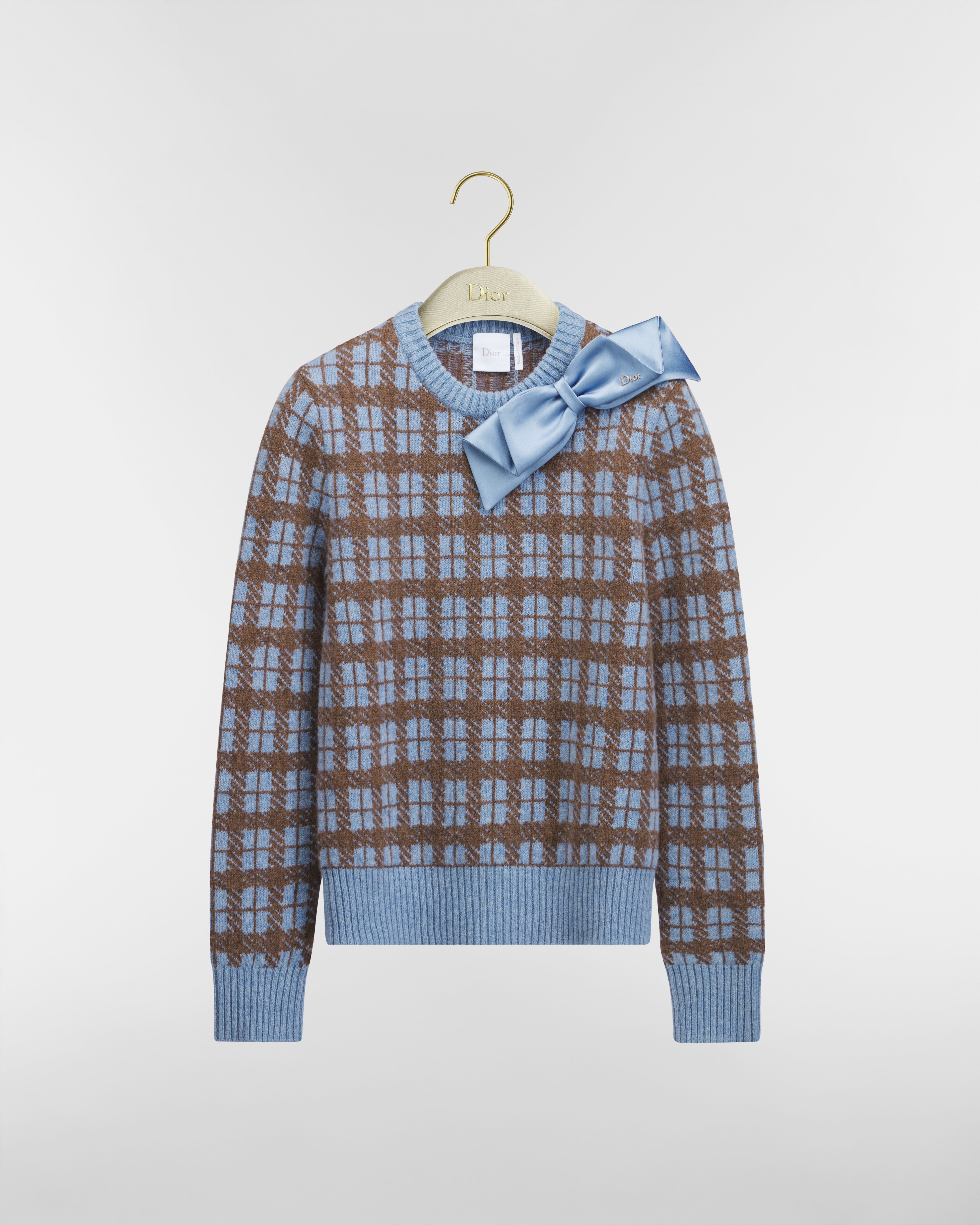 蓝色和棕色绵羊毛针织面料 Check'n'Dior 图案