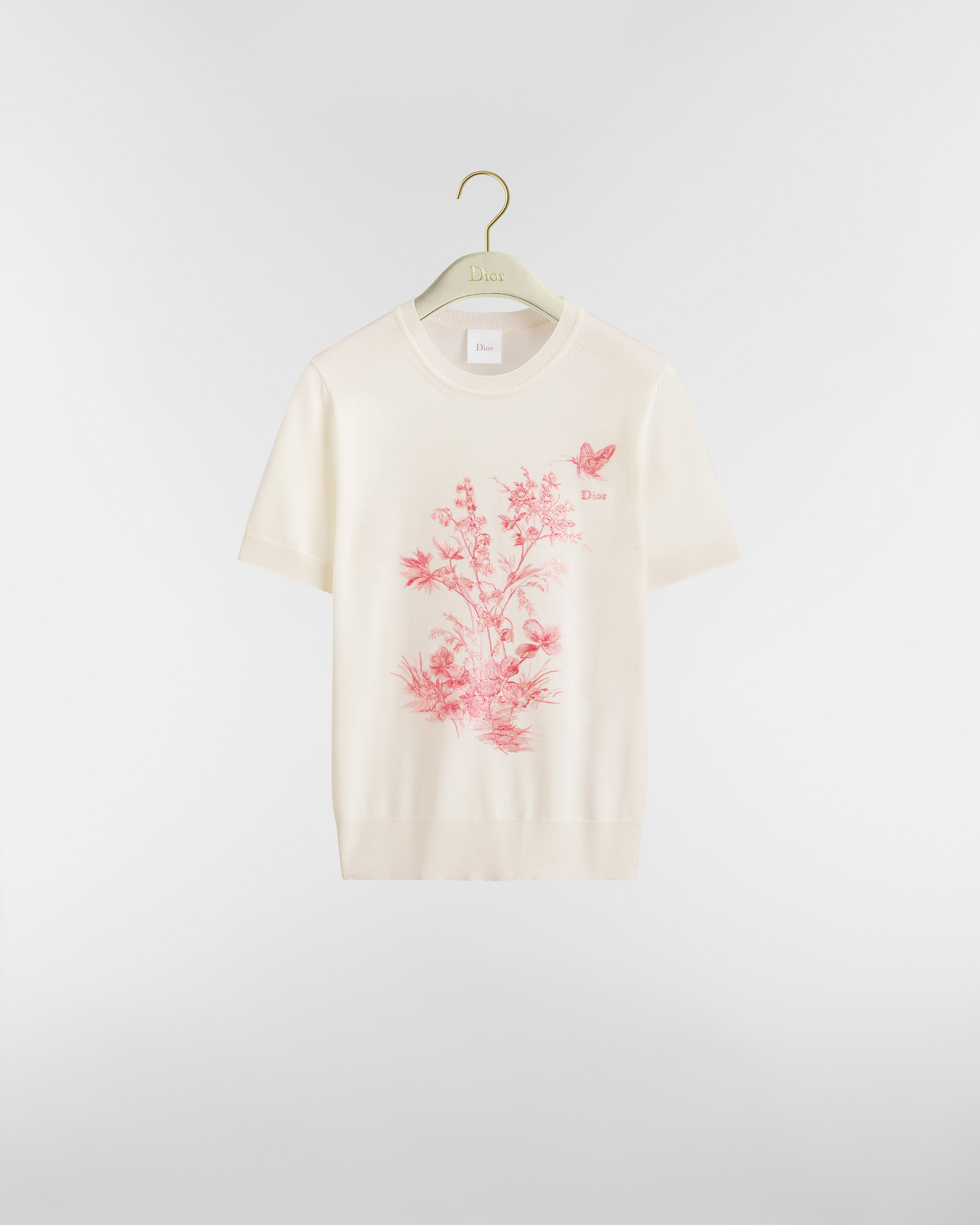 这款短袖针织衫来自 Dioriviera 限定系列,饰以粉色 Floral Garden 茹伊印花刺绣,采用优雅缤纷的花卉设计重新诠释 Dior 的经典图案。采用白色绵羊毛和桑蚕丝混纺针织面料精心制作,常规版型搭配罗纹饰边更显精致。饰以 Dior 标志提升格调,可搭配其他 Floral Garden 茹伊印花图案单品,打造精致的 Dioriviera 整体造型。