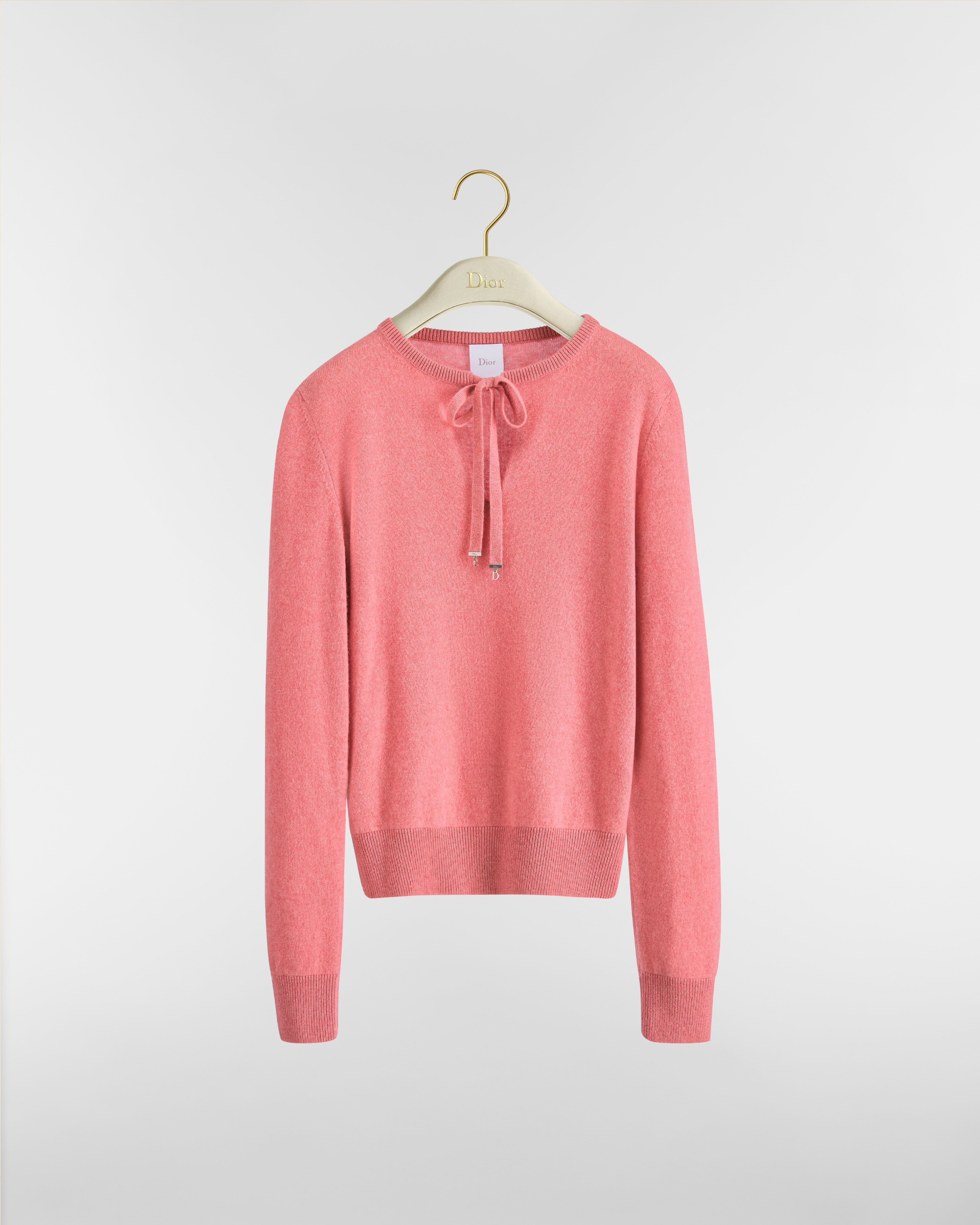 粉色山羊绒织物搭配蝴蝶结衣领