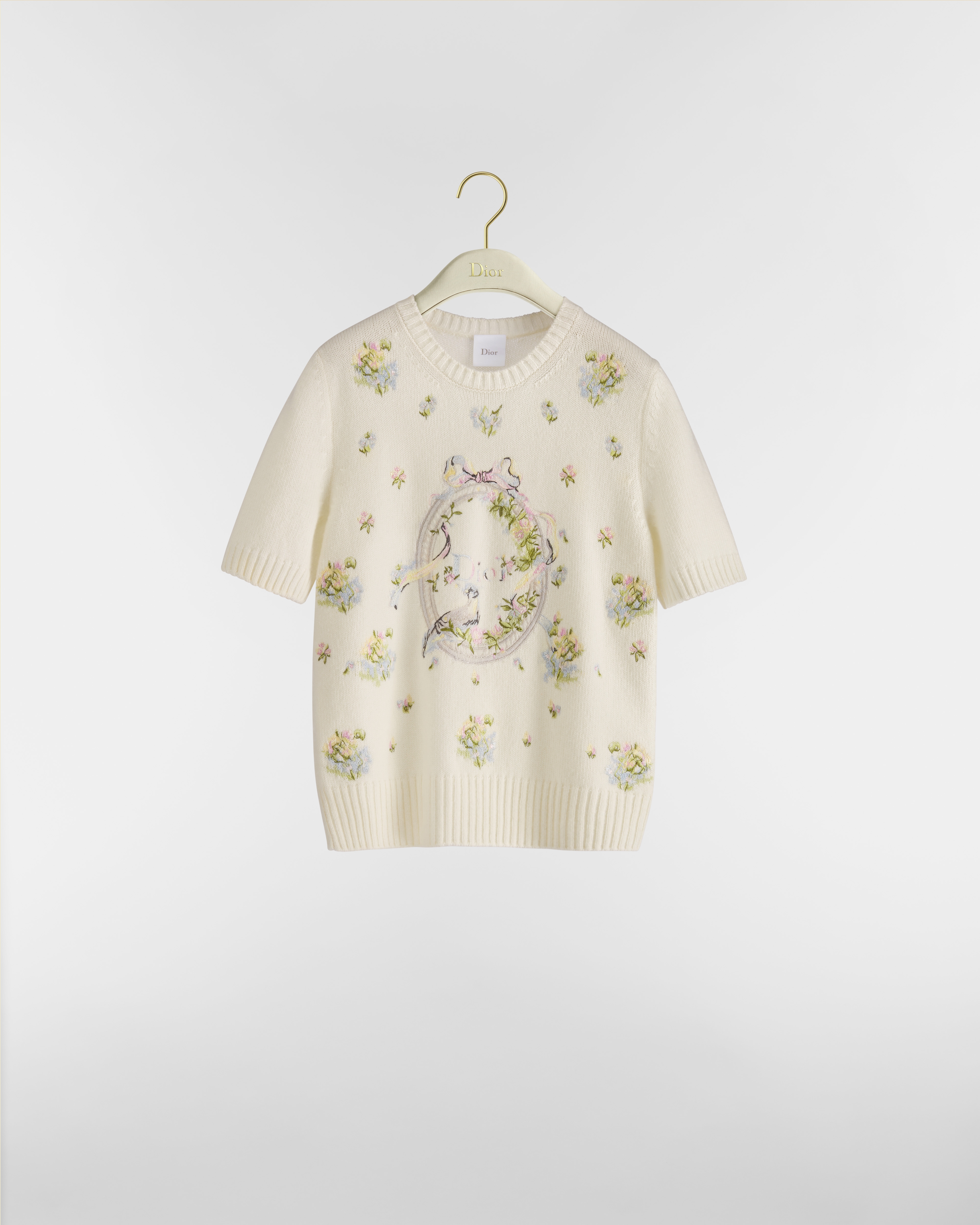 淡柔色山羊绒混纺针织面料 Dior Velvet Bloom 图案刺绣