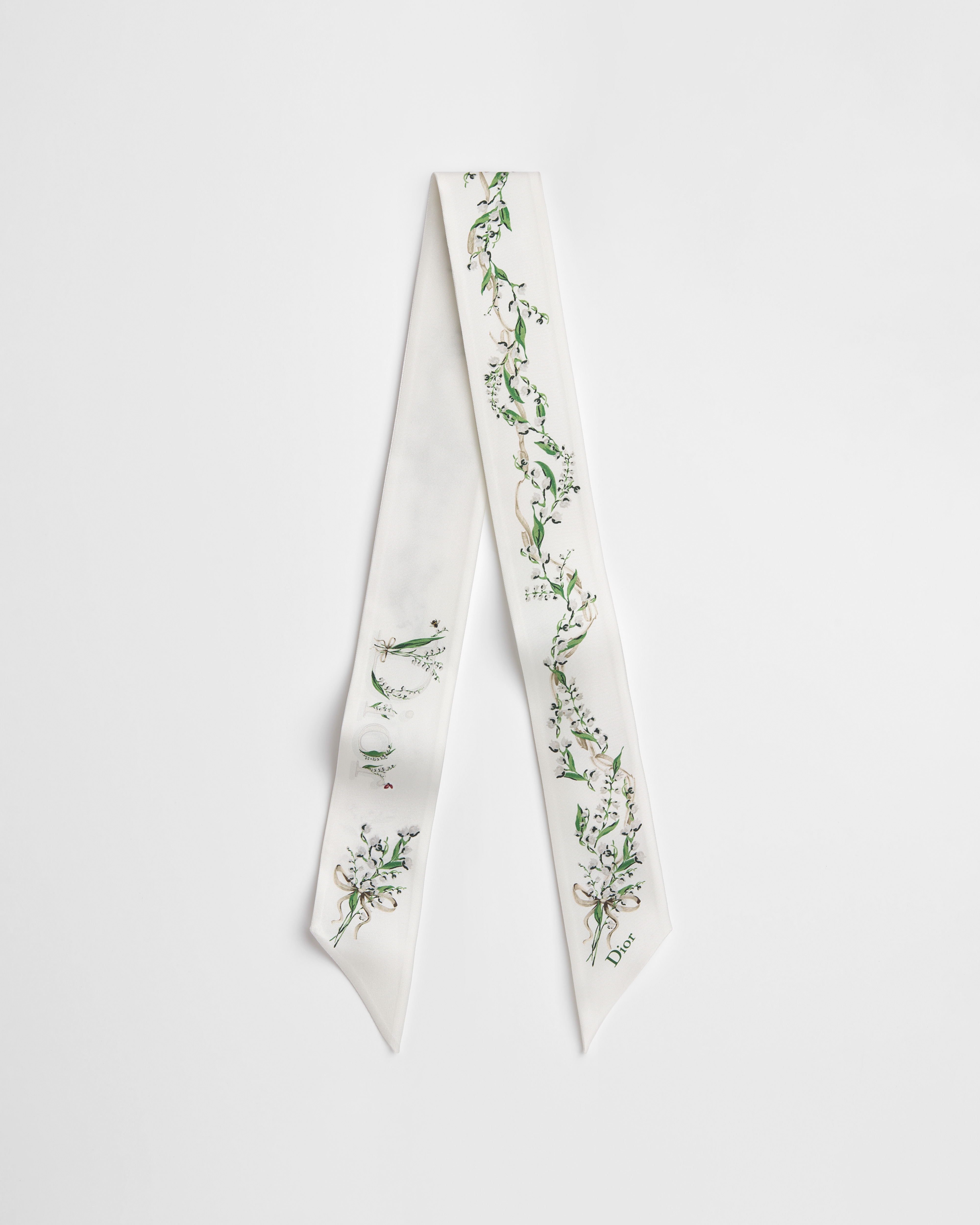 •  粉色桑蚕丝斜纹面料多色铃兰图案