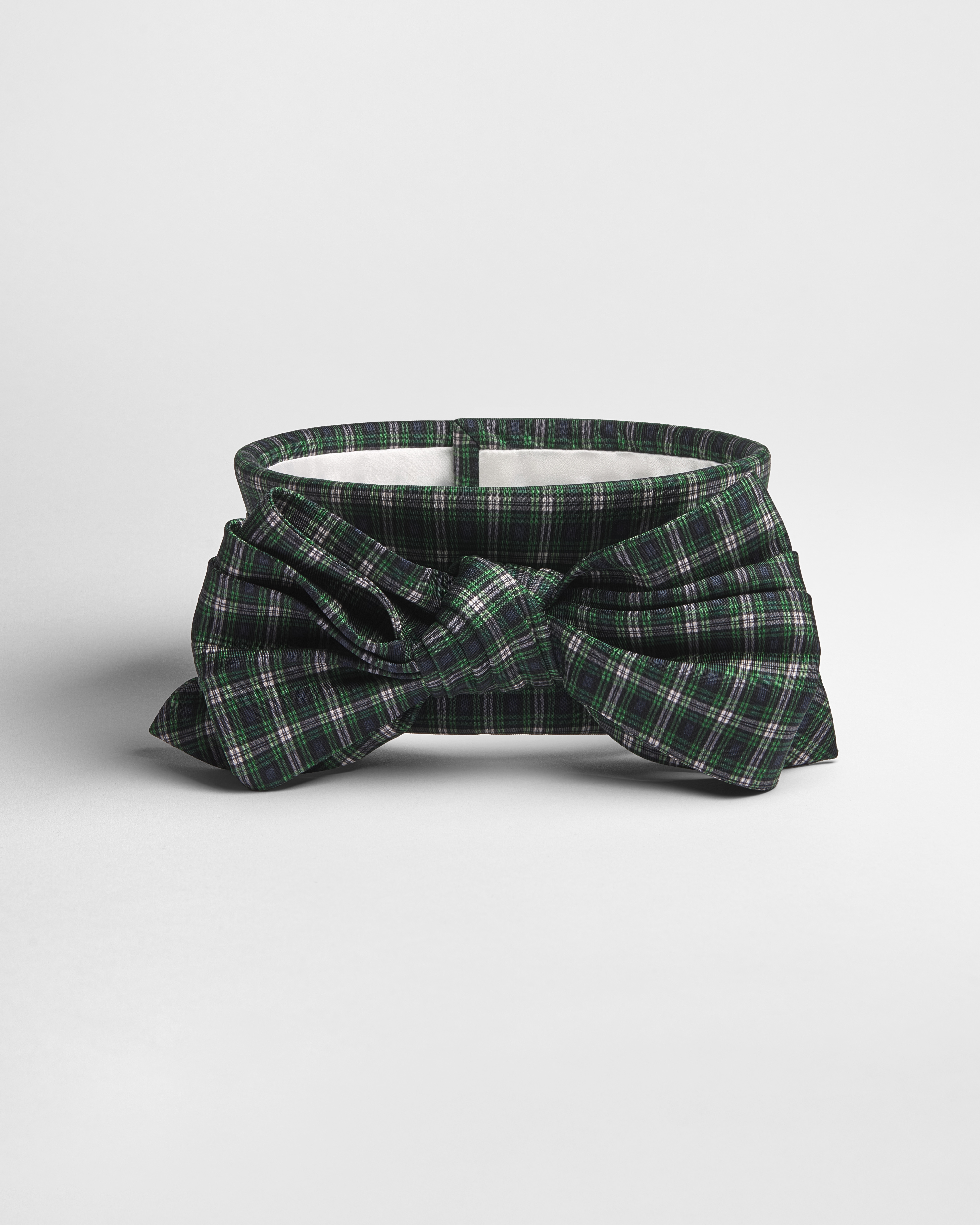 这款可调节领结衣领由乔纳森·安德森 (Jonathan Anderson) 为其 Dior 首秀倾情设计, 致敬充满诗意的高订风格装饰。采用桑蚕丝斜纹面料精心制作,饰以绿色的 Check'n'Dior 图案,以高订风格全新演绎英式精裁工艺传统和格子图案,彰显醒目时髦的高雅风范。造型挺括,搭配正面大号蝴蝶结和后侧钩扣开合。可调节设计,可为各式装扮提升格调,打造高订风格造型。