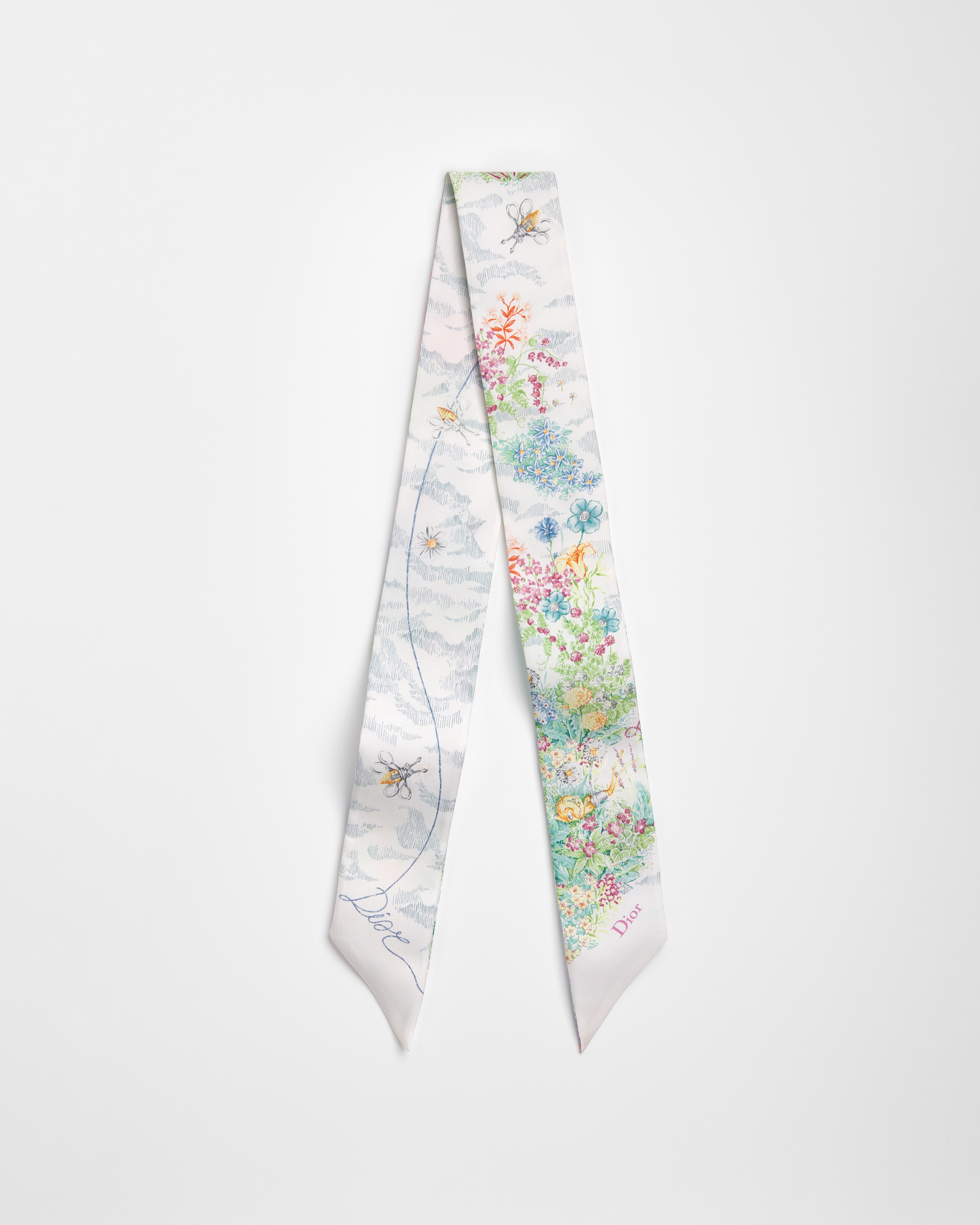 •  粉色桑蚕丝斜纹面料多色 Dior Charming Garden 图案