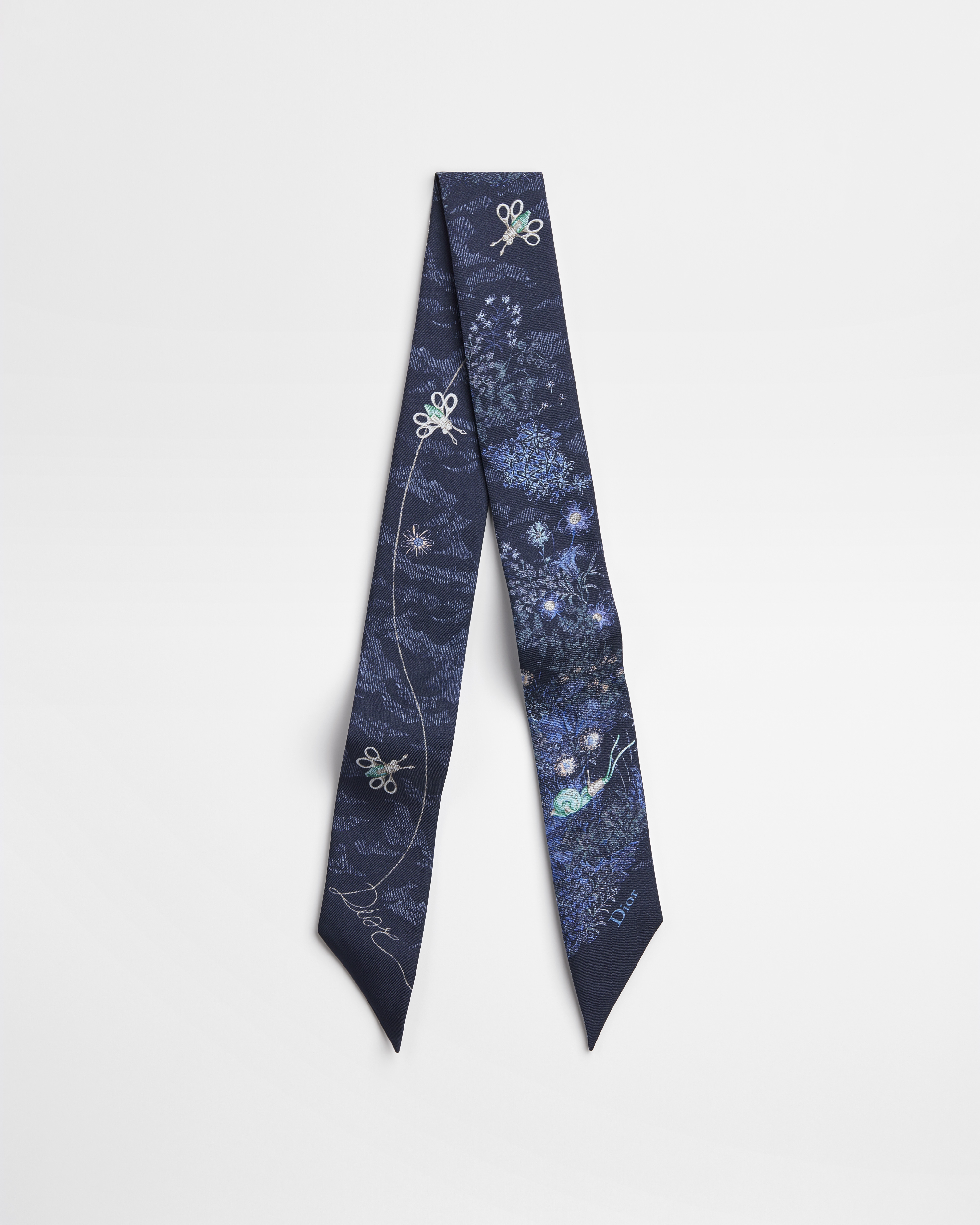 •  白色桑蚕丝斜纹面料多色 Dior Charming Garden 图案