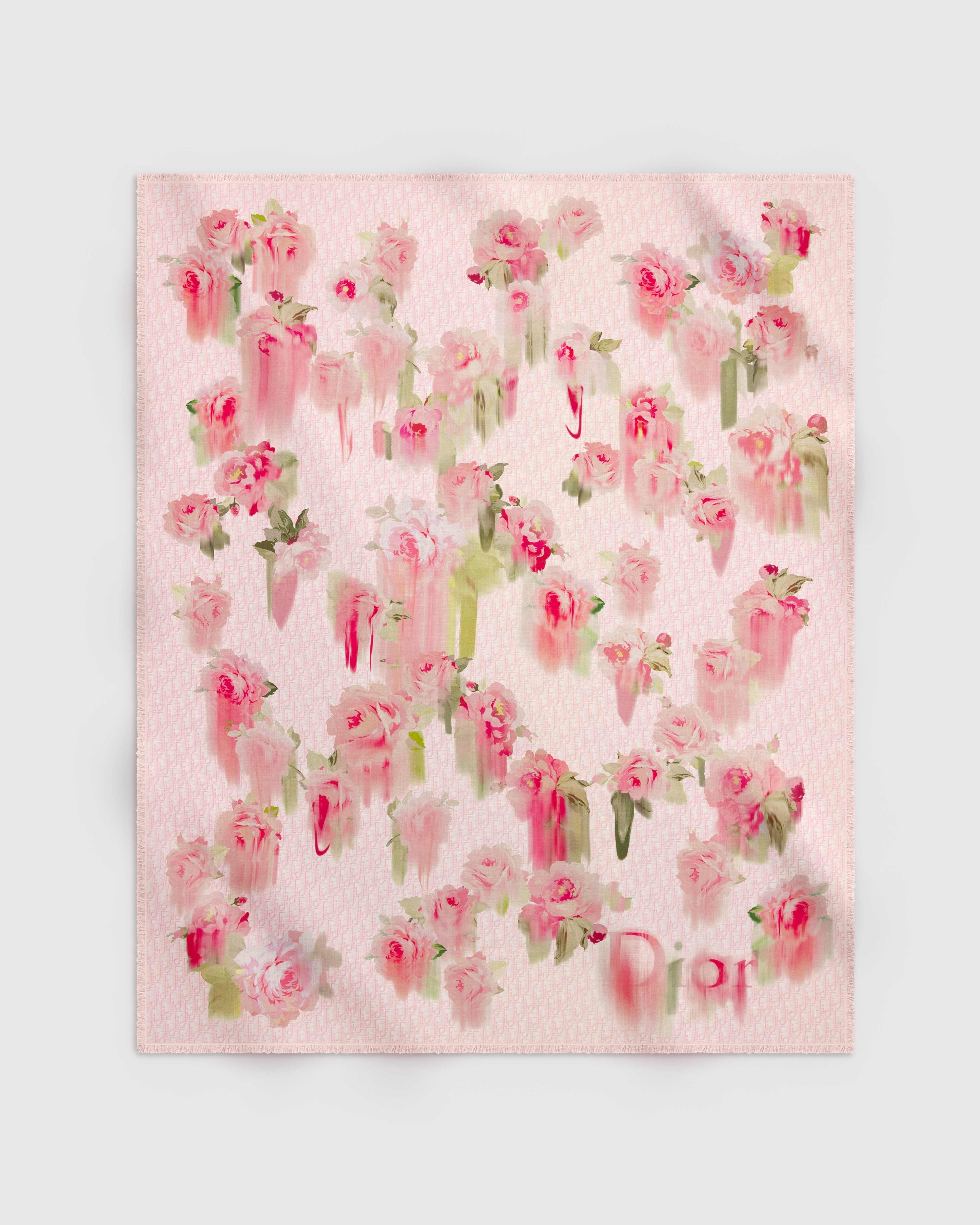 粉色和绿色山羊绒面料 Dior Painted Roses 图案