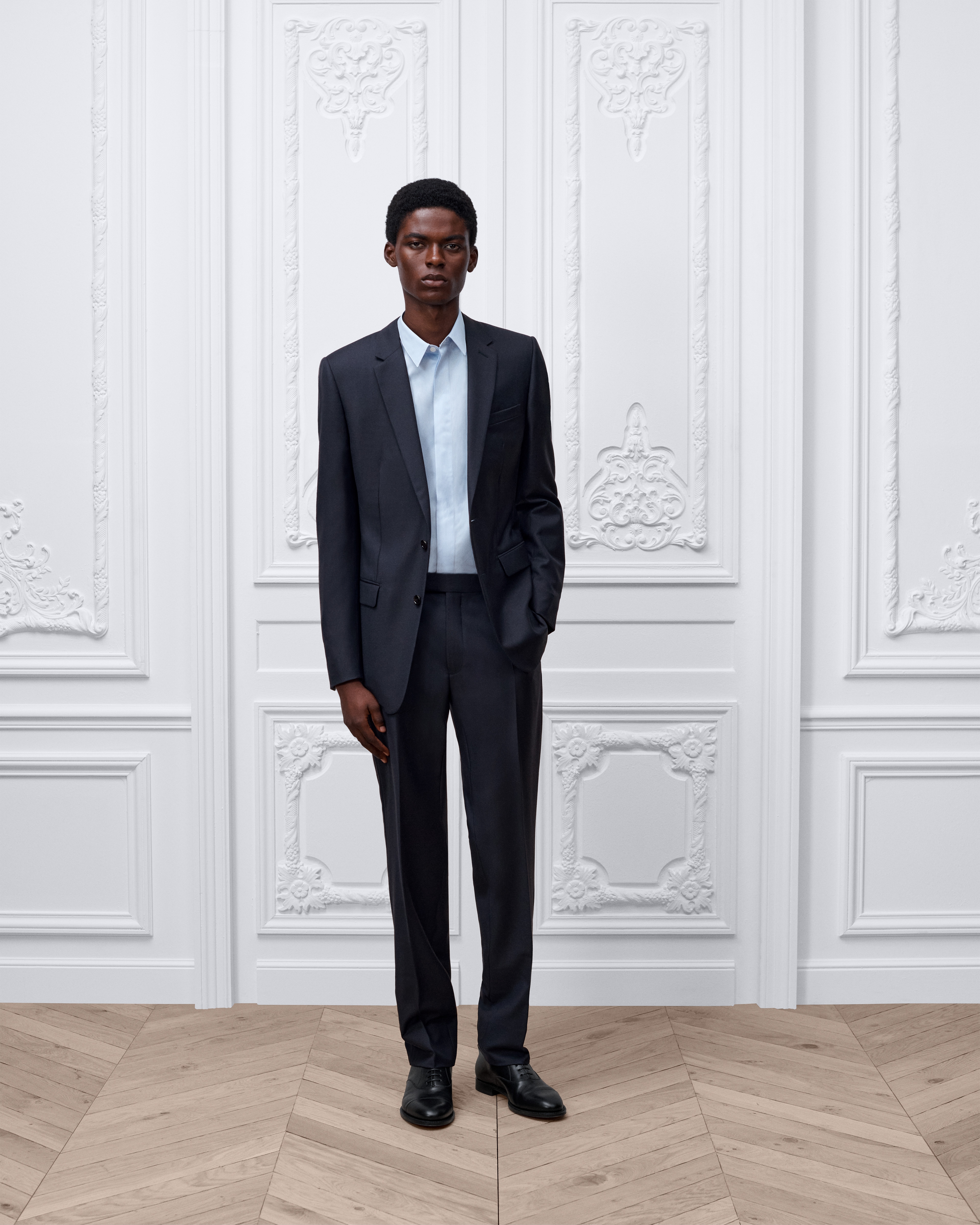 模特身高 185 厘米,穿着 48R 码(法国)
