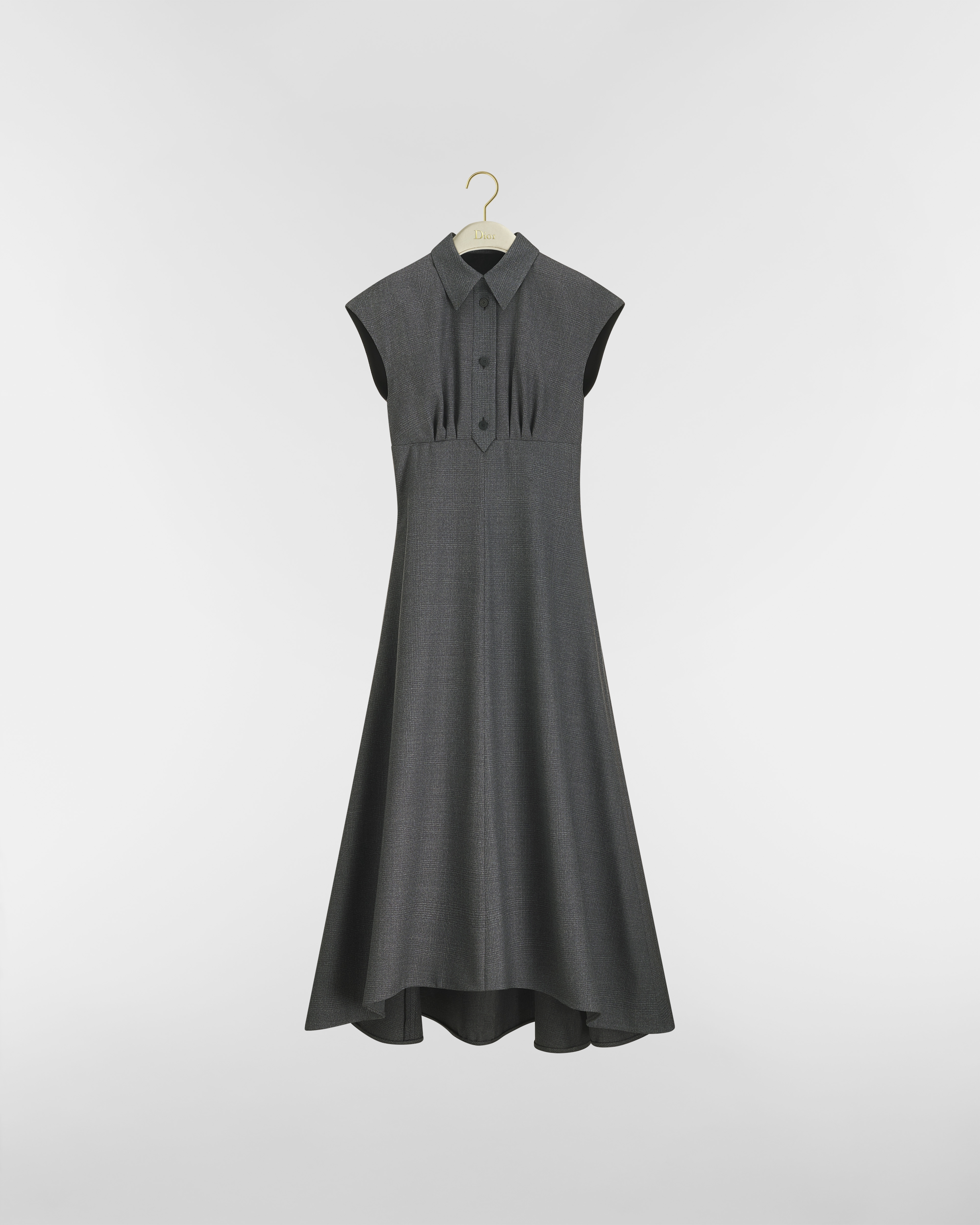 这款中长款连衣裙重新诠释 Dior 优雅的经典标识。采用灰色绵羊毛面料精心制作,展示威尔士亲王格纹图案,喇叭形廓形,搭配背面略长下摆设计和正面纽扣开合提升格调。可打造高订风格造型,为各种场合赋予自然优雅风范。