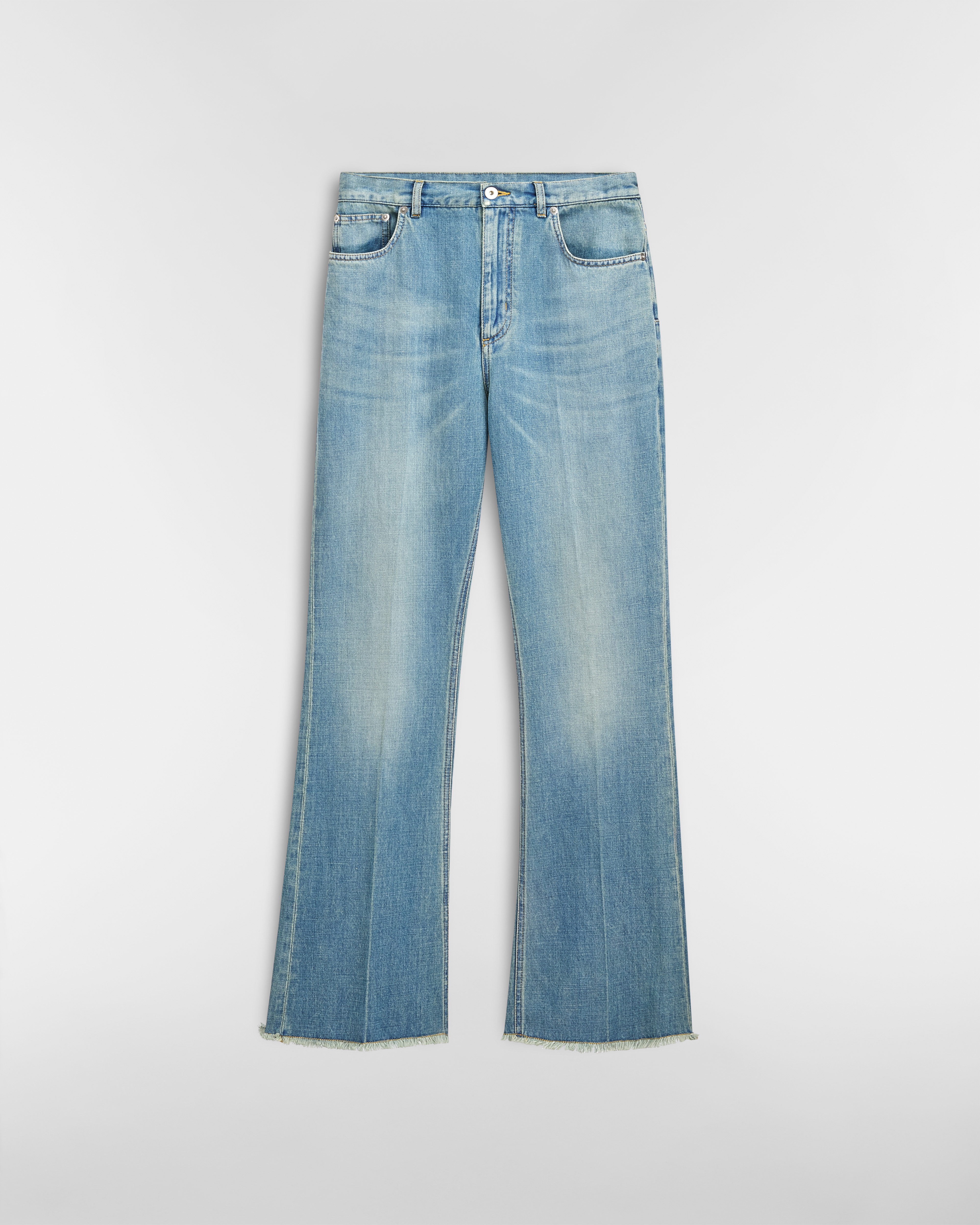 这款牛仔裤来自 Dioriviera 限定系列,彰显时髦喇叭形剪裁。采用蓝色石洗棉质和亚麻混纺牛仔布精心制作,流苏裤脚设计,搭配背面 Dior 绒面革标牌。可打造精致的时尚复古造型。