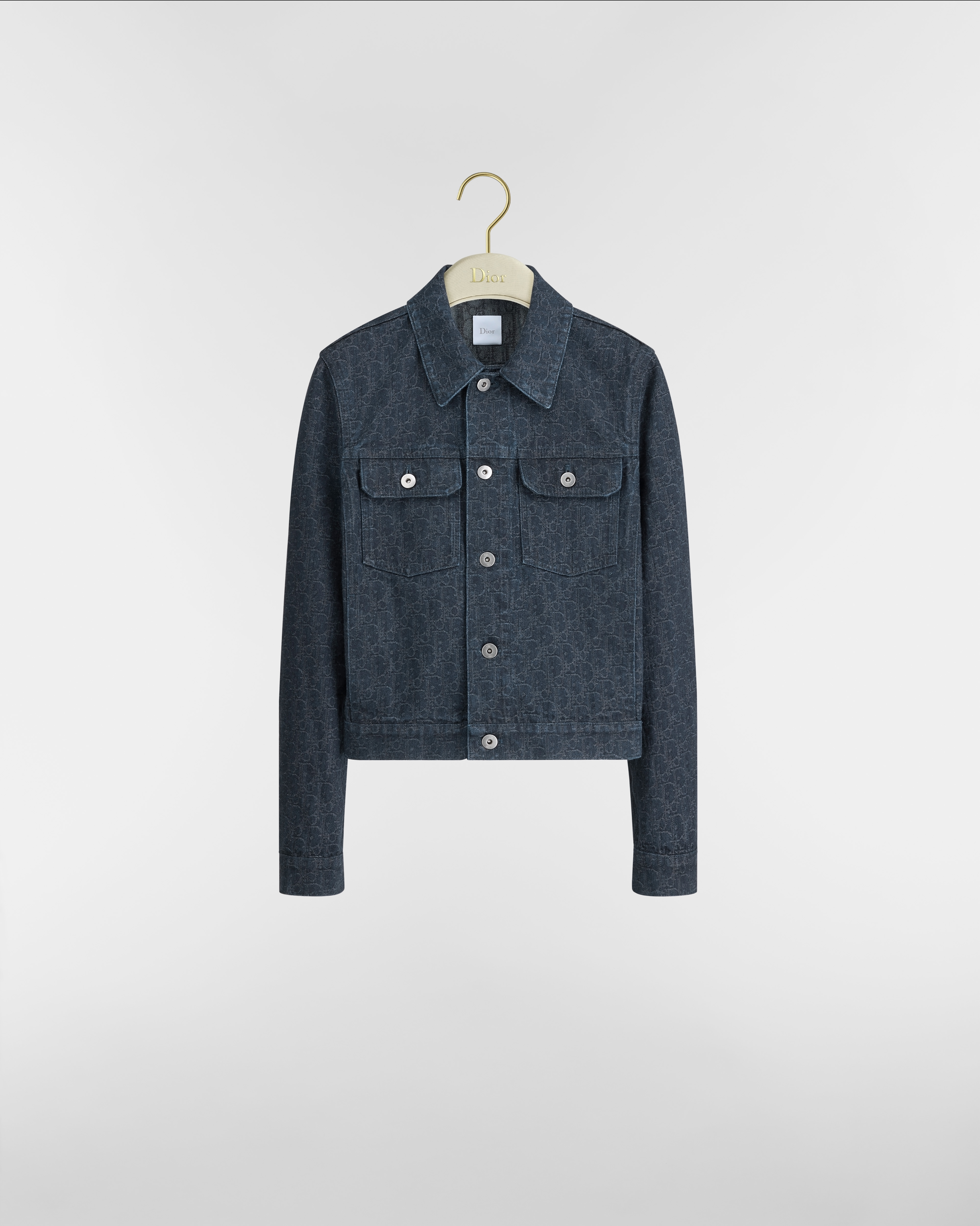 这款外套饰以经典的 Oblique 印花。采用海军蓝色棉质牛仔布精心制作,短款常规版型,背面饰以 Dior 皮革标牌。可与配套的牛仔裤搭配穿着,打造精致造型。