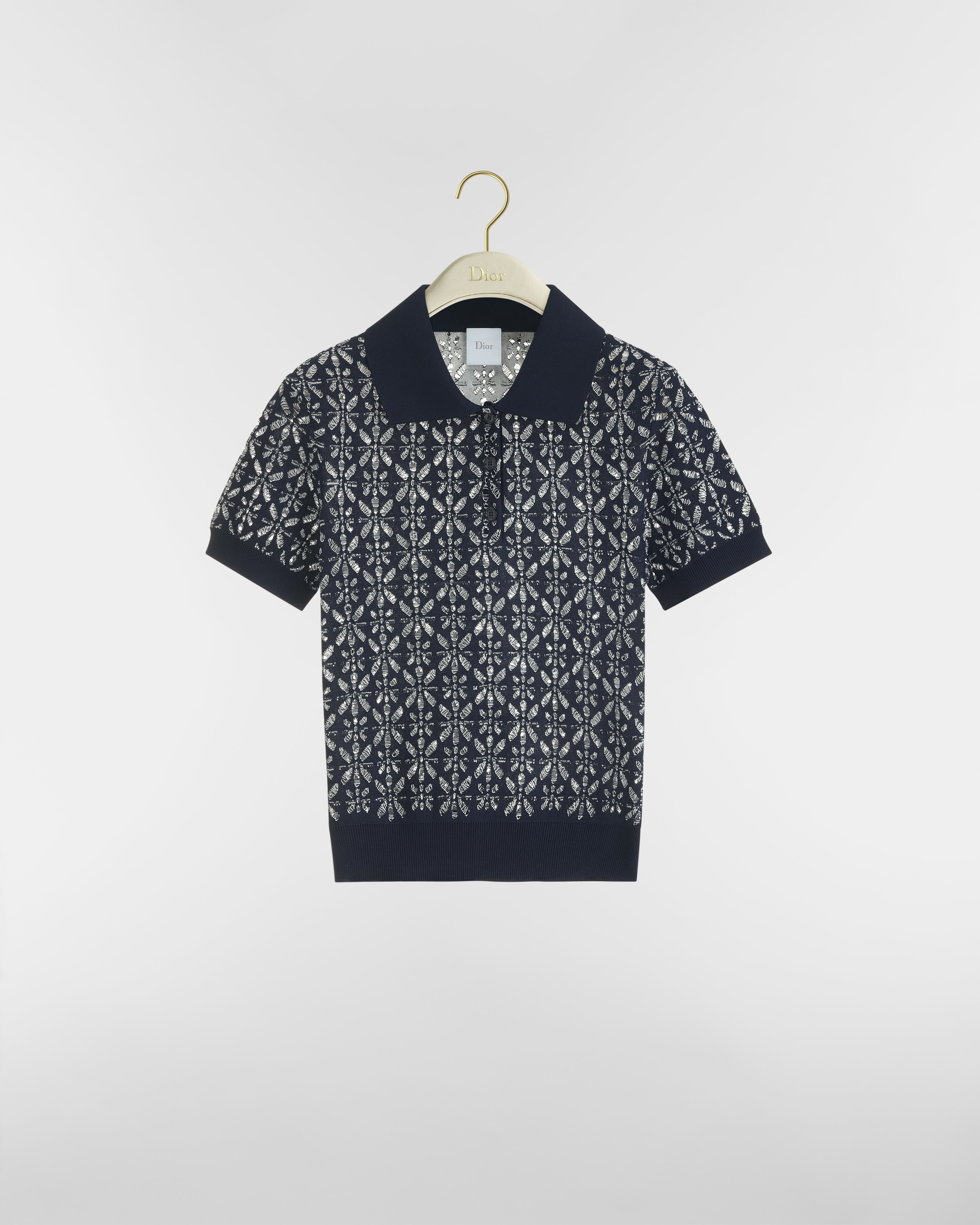 这款短袖针织衫来自 Dioriviera 限定系列,彰显 Dior 的花卉传承。采用海军蓝色镂空效果棉质针织面料精心制作,饰以花卉图案,短款常规版型别具一格,搭配罗纹 Polo 衣领和罗纹饰边提升格调。可为各式 Dioriviera 造型增添优雅风范。