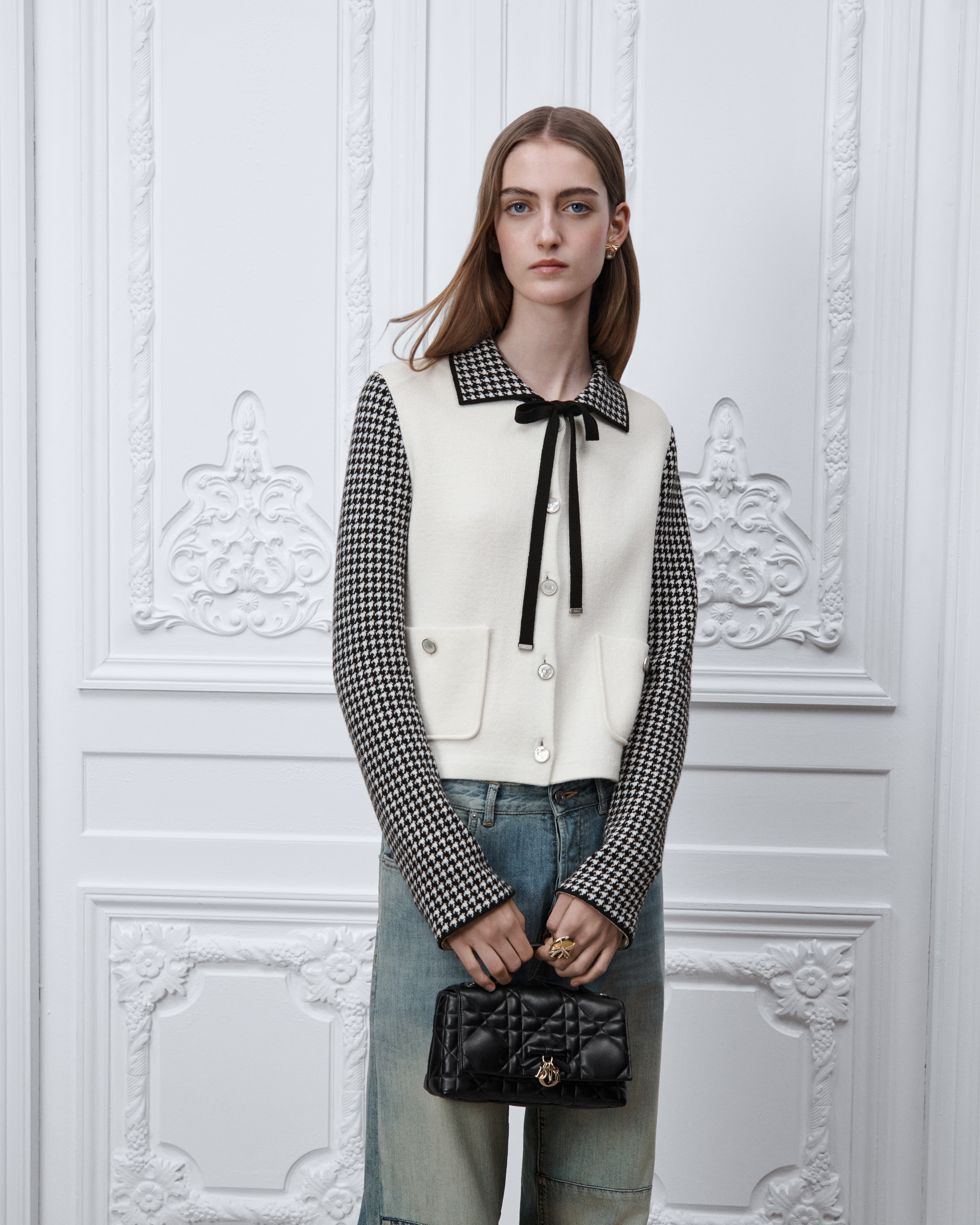 珍珠母贝纽扣点缀以银色饰面金属 CD 标志