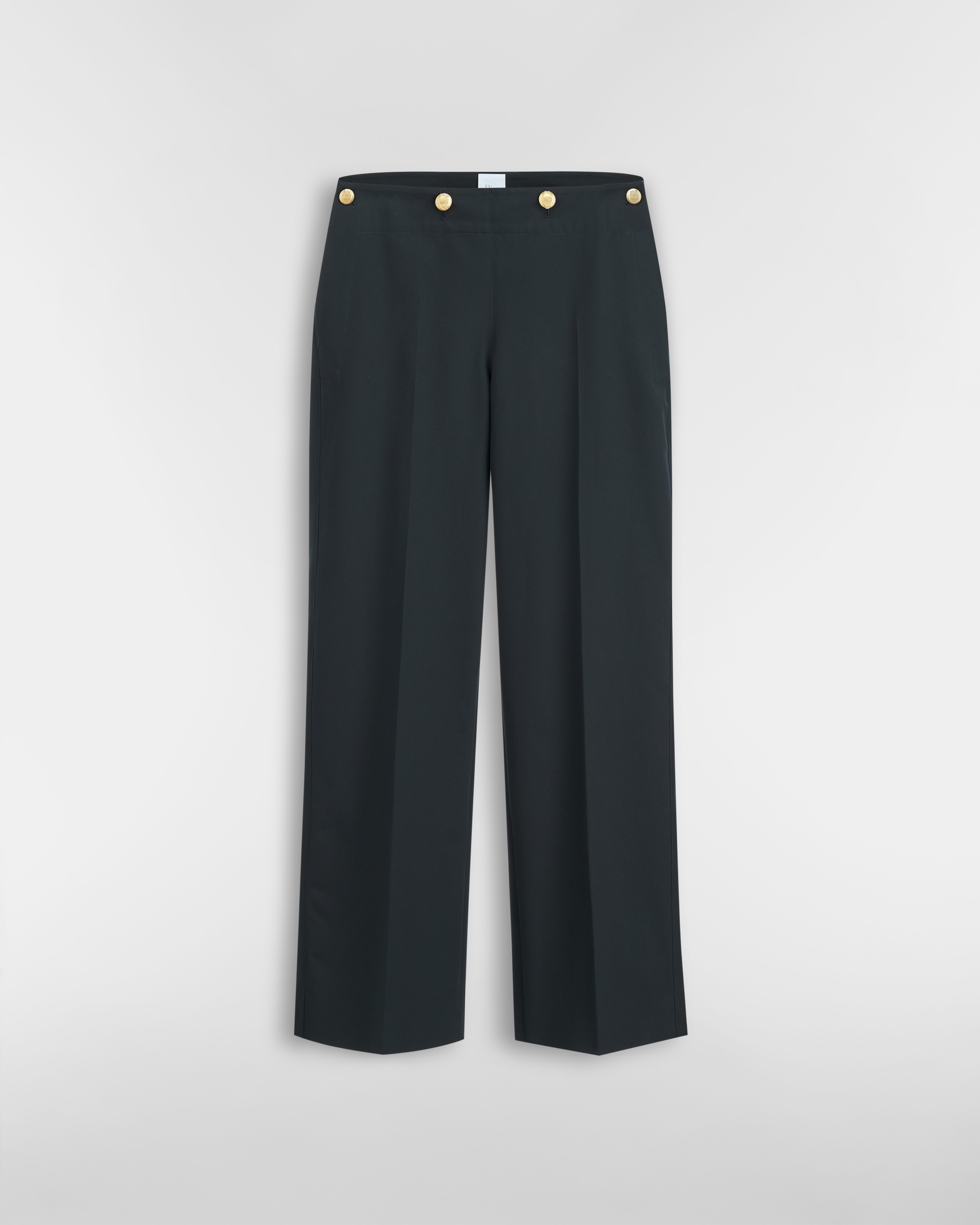 这款长裤彰显乔纳森·安德森 (Jonathan Anderson) 对优雅风格的现代诠释。采用海军蓝色棉质混纺华达呢面料精心制作,常规版型别具一格,饰以金色饰面金属 Dior Médaillon 标志纽扣提升格调,突显腰部和后侧曲线,灵感源自 Dior 沙龙 18 世纪洛可可风格美学。可与配套外套搭配,打造精致的 Dior Médaillon 标志造型。