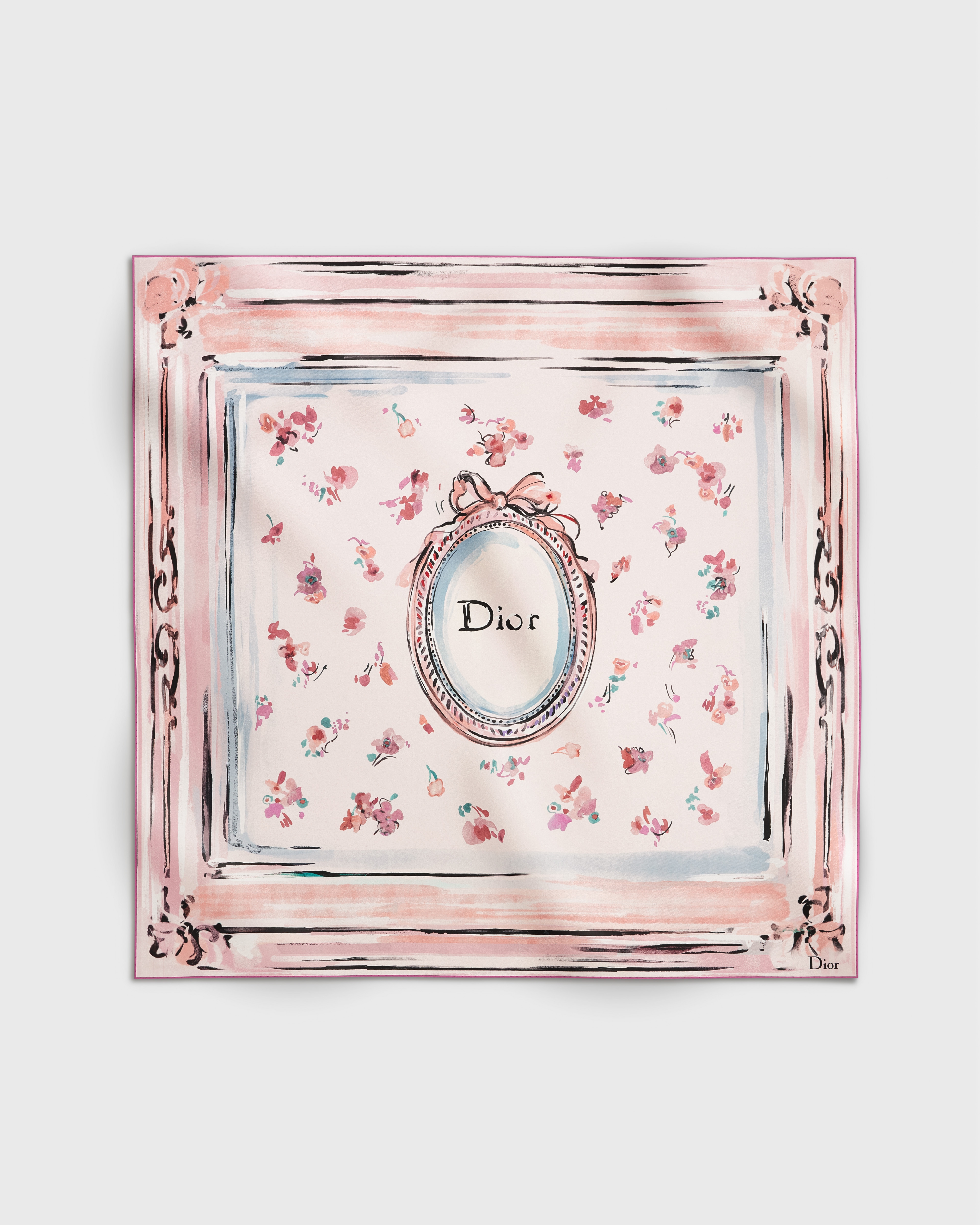 这款方巾来自 Dioriviera 限定系列,饰以 Dior Floral Portrait 图案,重新诠释 Dior Médaillon 标志,优雅的设计彰显艺术家克里斯汀·贝拉尔 (Christian Bérard) 作品*的精神。采用粉色桑蚕丝斜纹面料精心制作,饰以多色图案,搭配对比鲜明的手工卷边,点缀以 Dior 标志。可系在颈部或头上。
