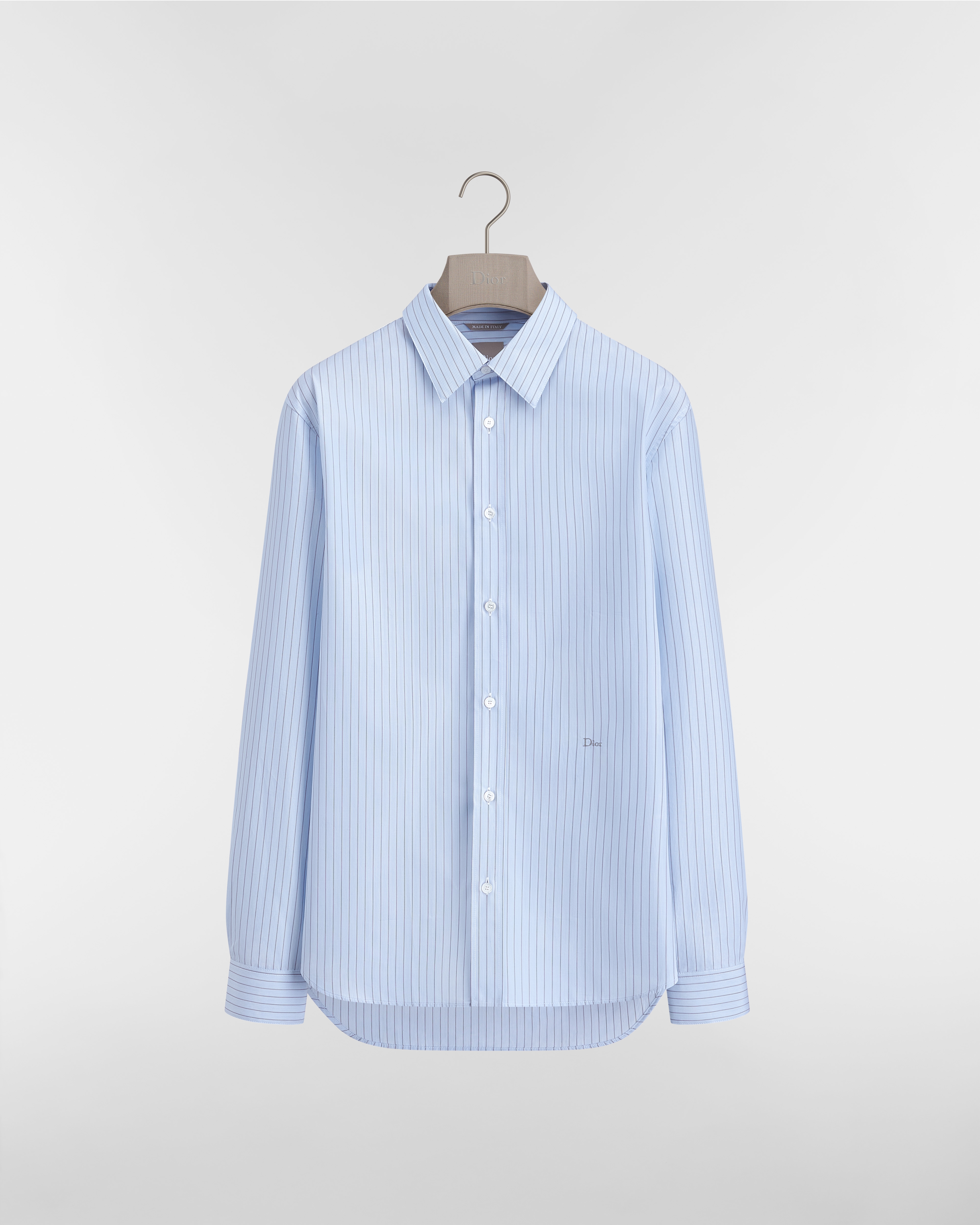 蓝色条纹棉府绸 Dior 刺绣