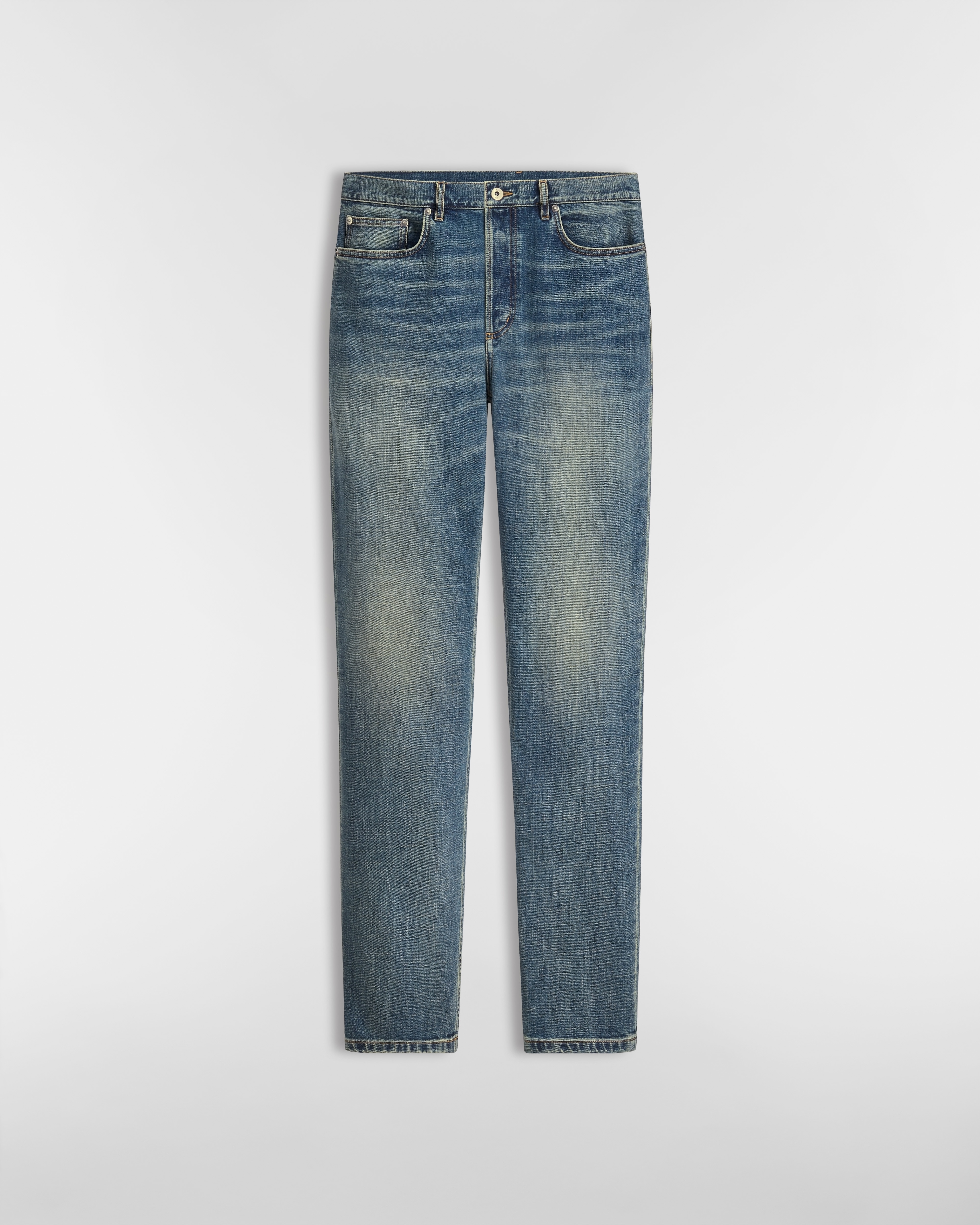 这款修身版型牛仔裤全新演绎经典剪裁。采用蓝色棉质混纺斜纹面料精心制作,展示经典牛仔细节,饰以 Dior 皮革标牌和缉面线。采用五口袋设计,紧身廓形,可与皮夹克理想搭配,彰显修身版型。
