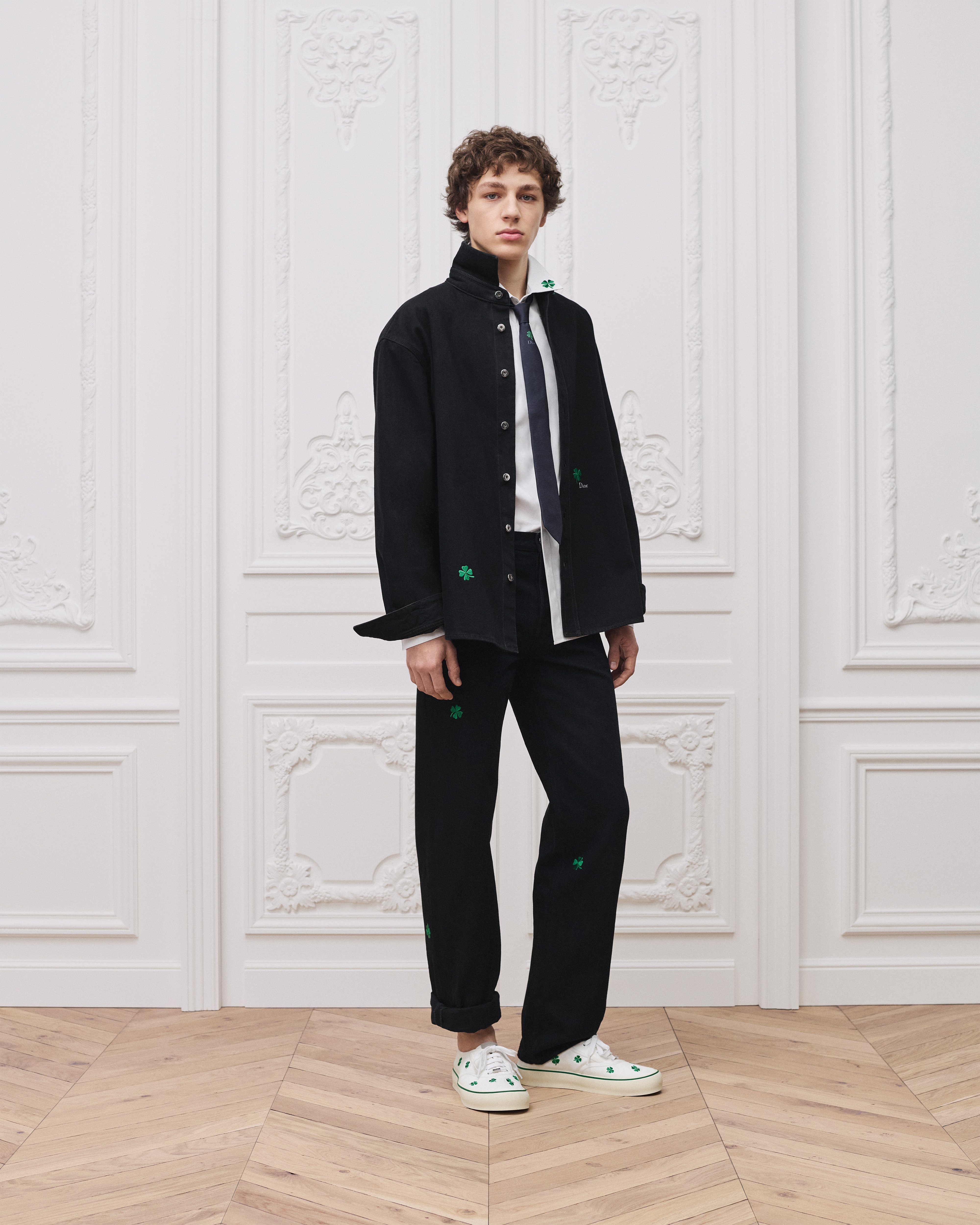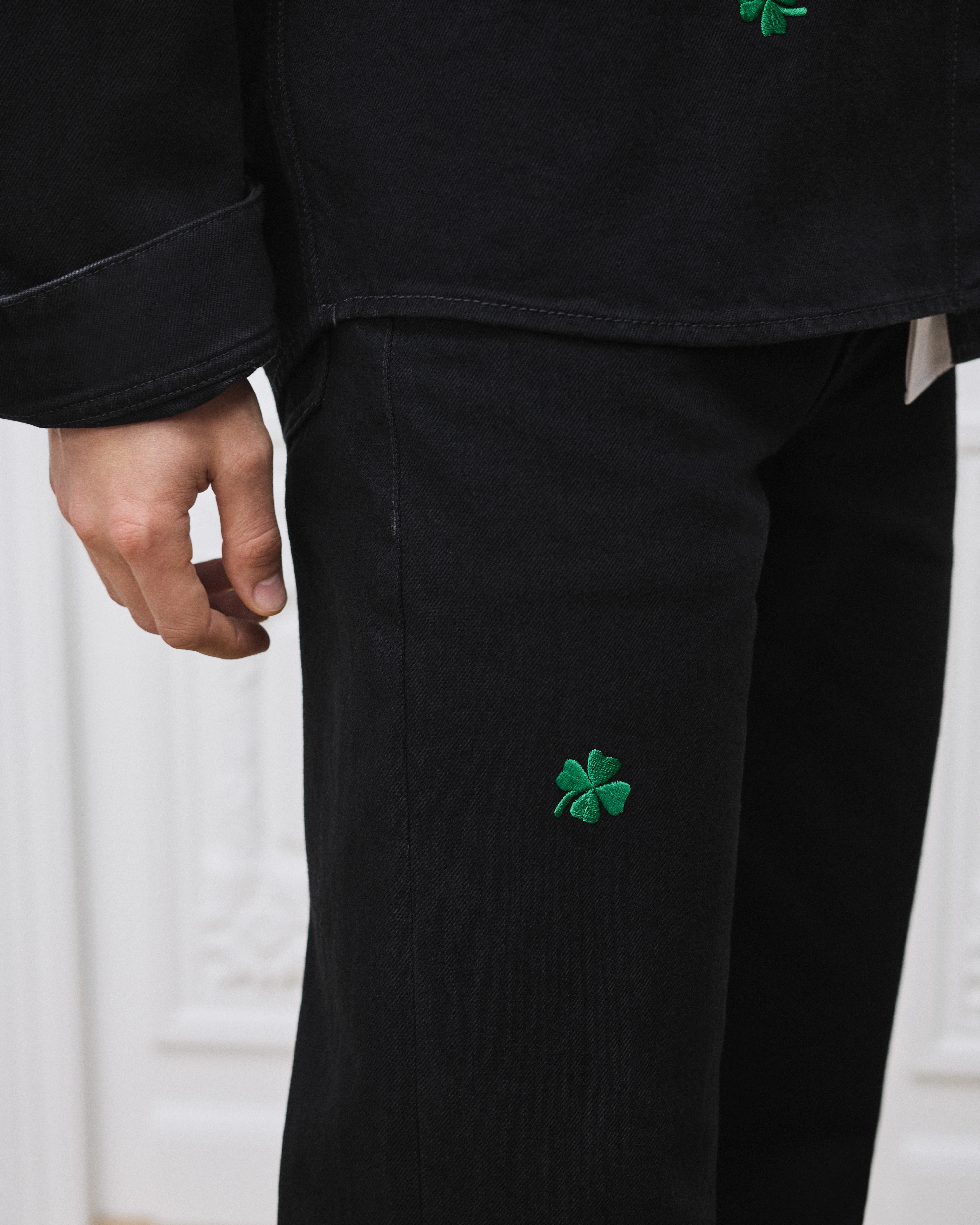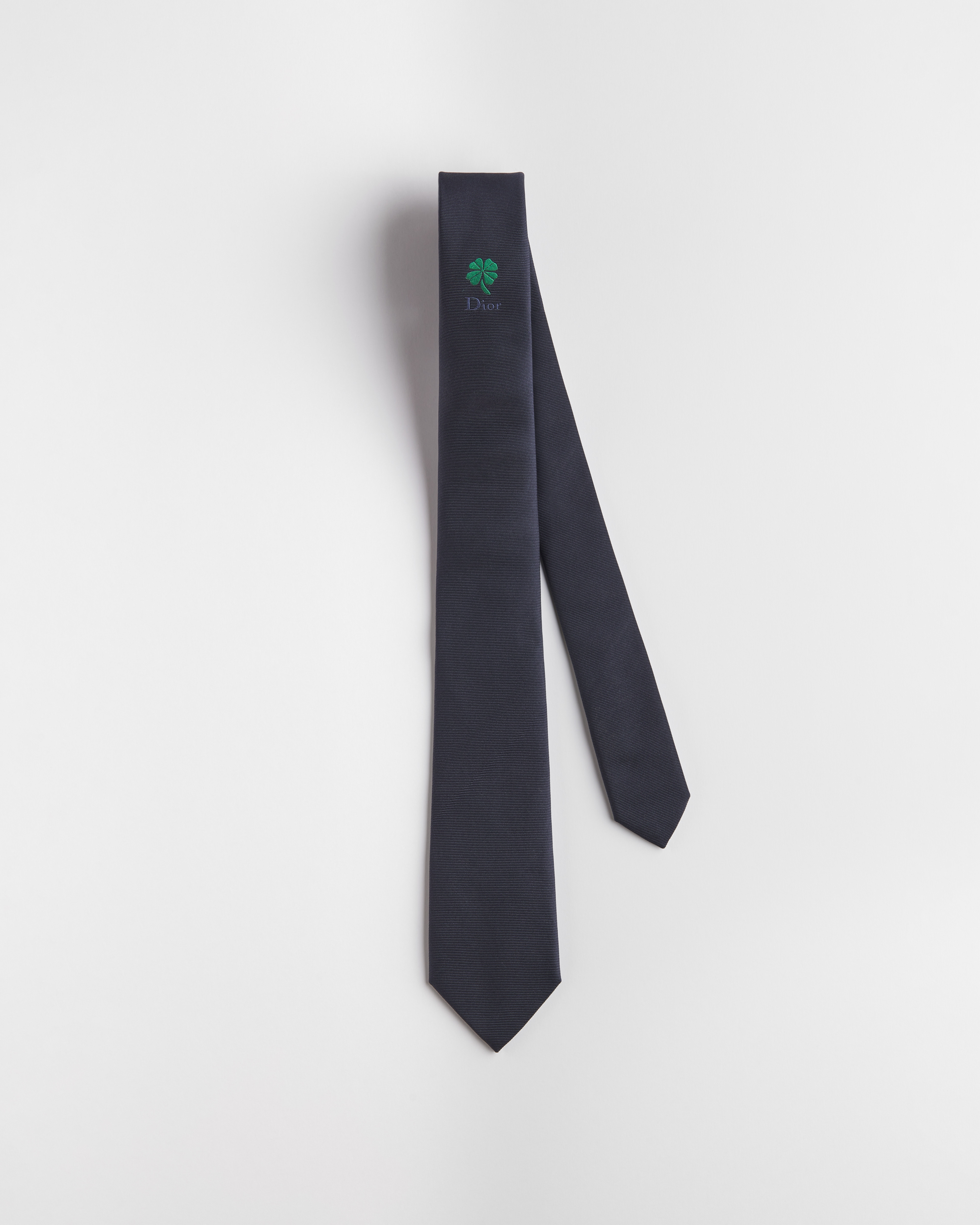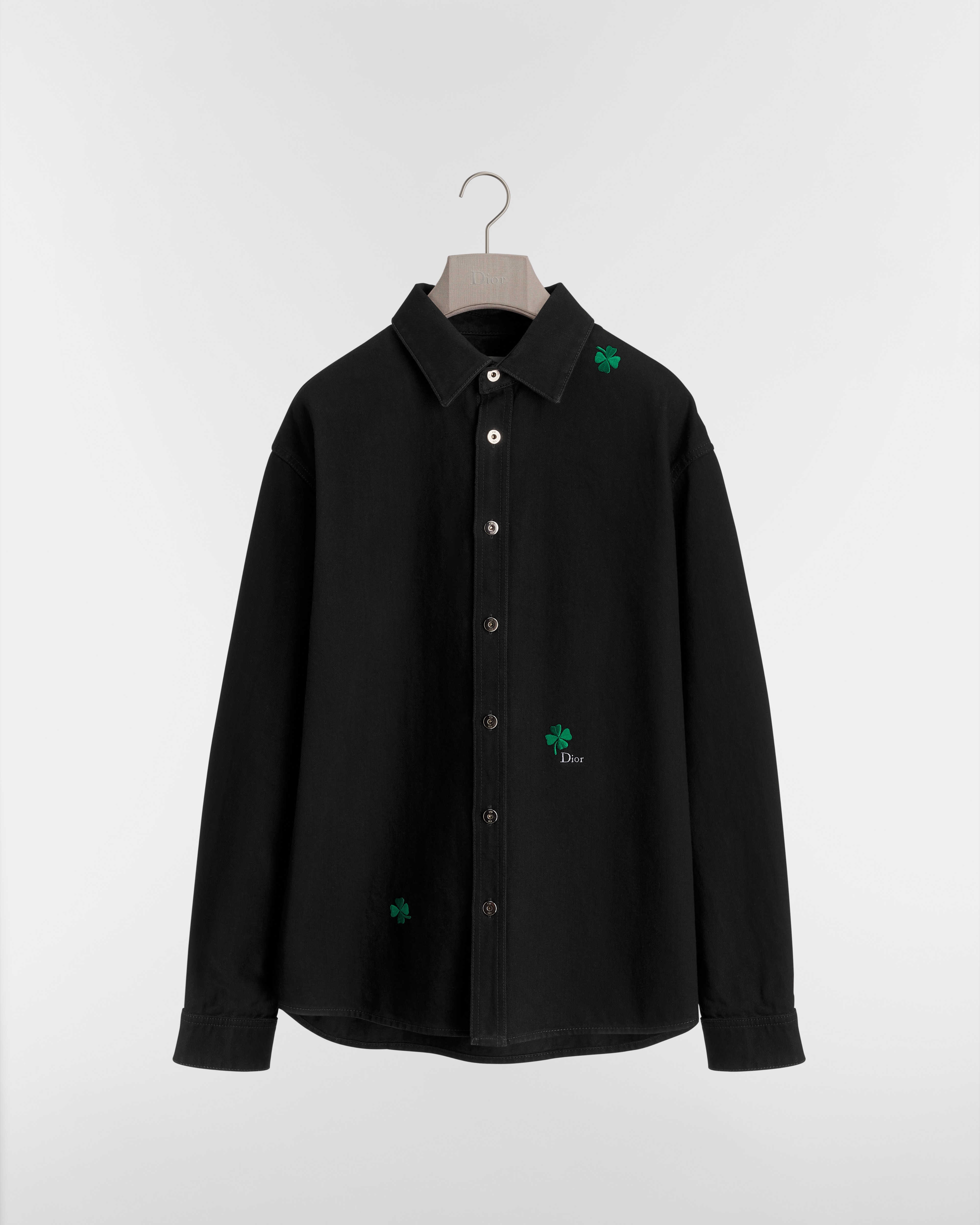 黑色棉质斜纹面料 Dior Clover 图案刺绣