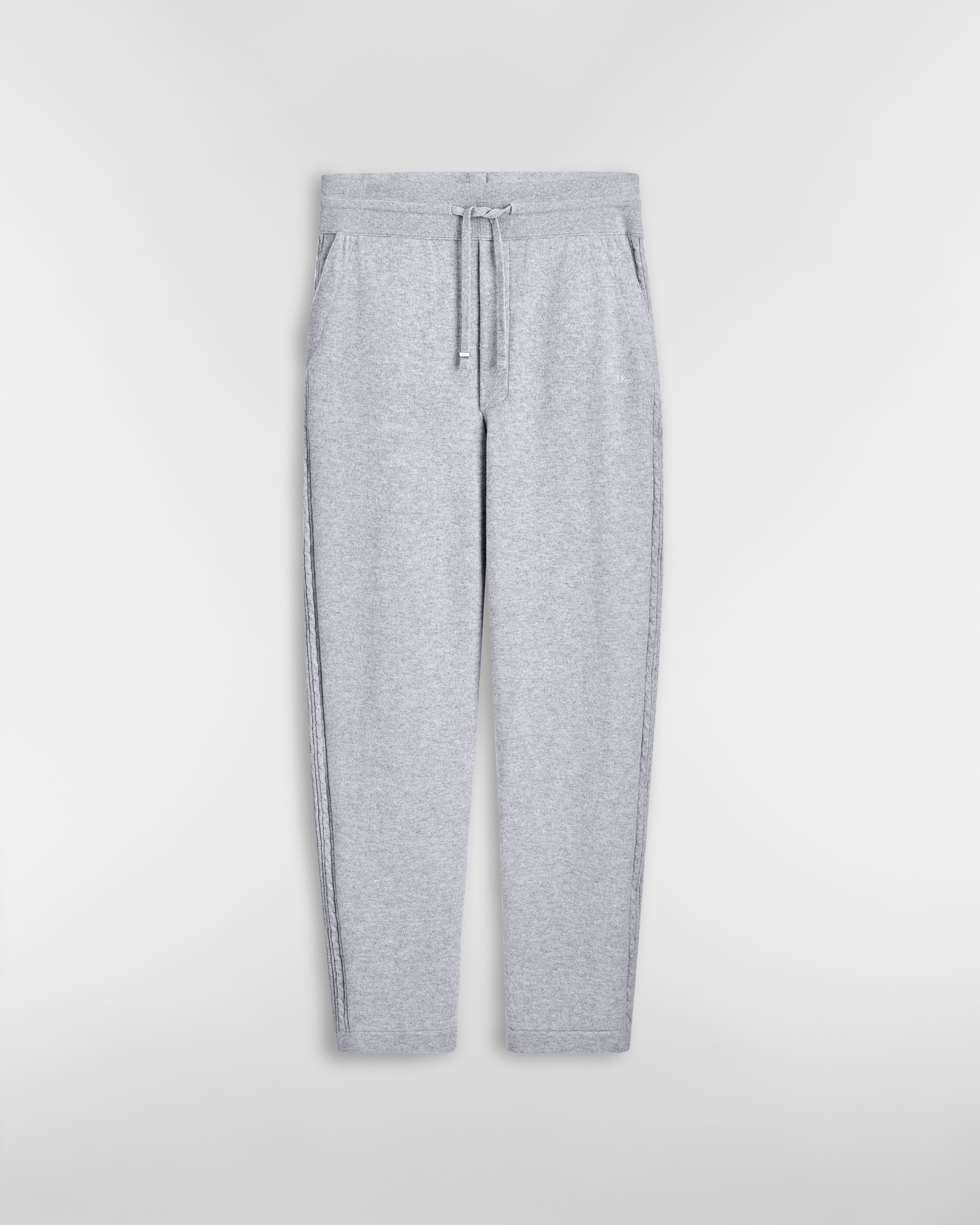 这款运动长裤全新演绎经典街头服饰单品。采用灰色山羊绒织物精心制作,裤腿饰以绞花针织条形图案提升廓形。款式柔软,可与配套的连帽针织衫搭配,打造休闲时尚的精致造型。