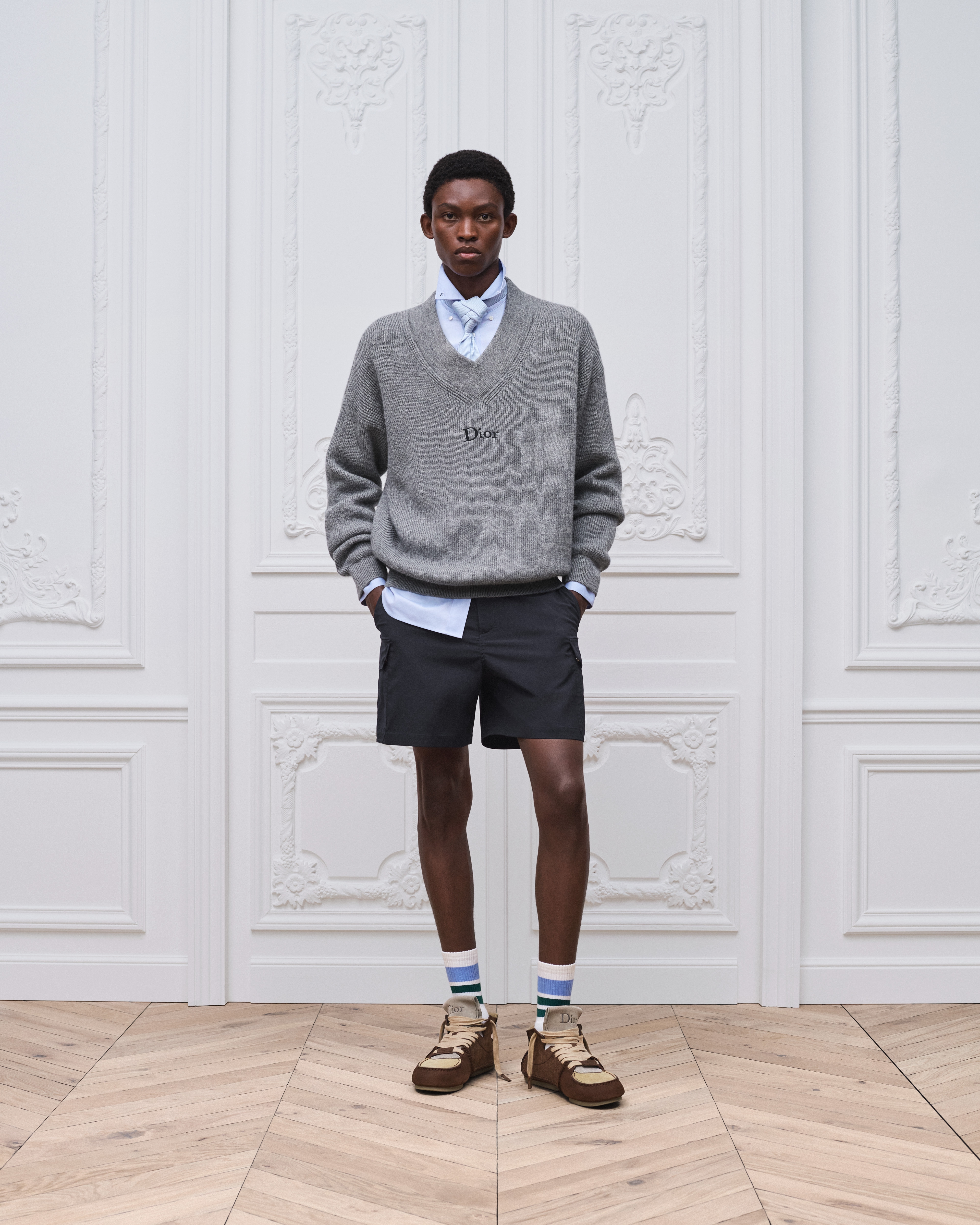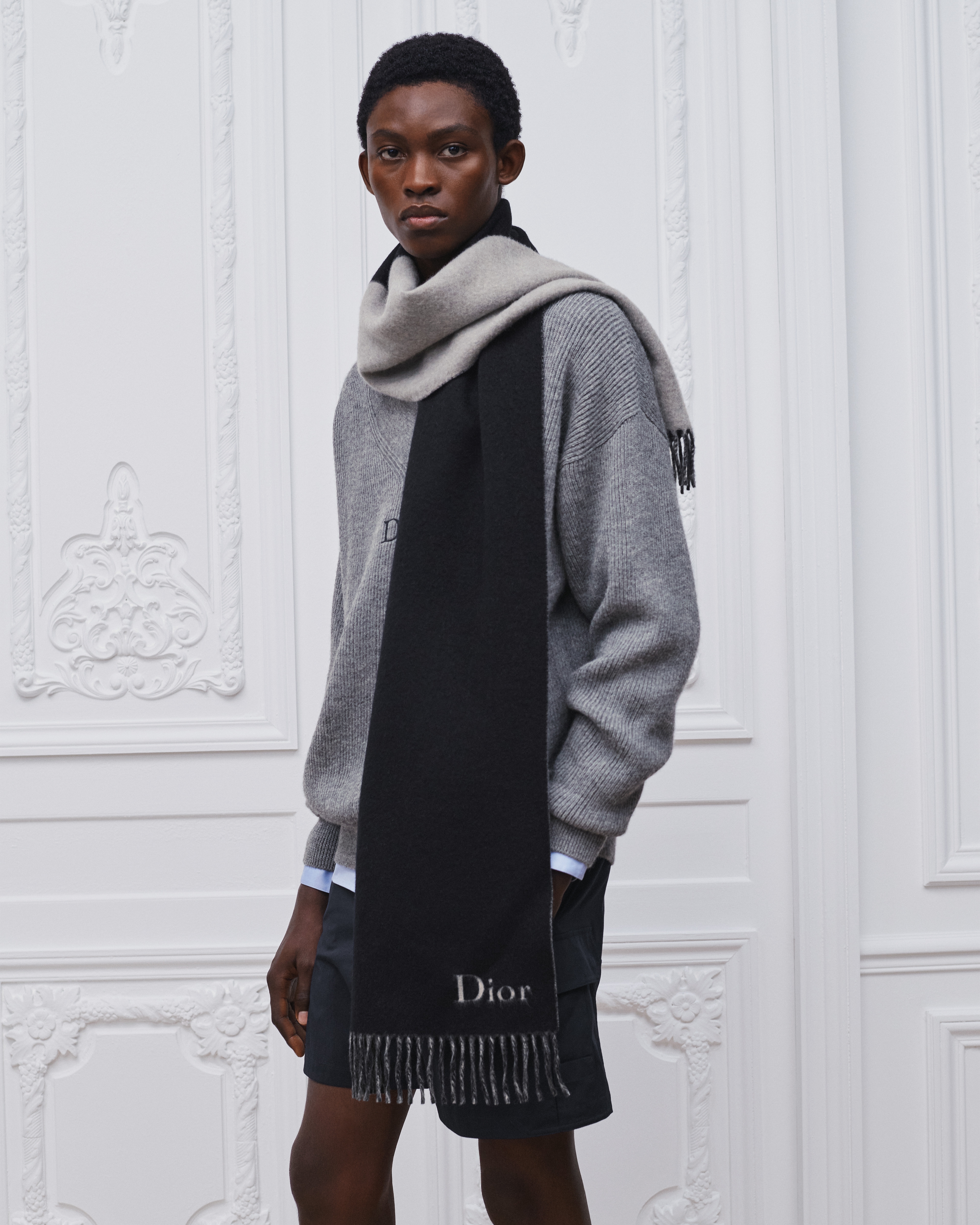 灰色绵羊毛和羊驼毛混纺针织面料 Dior 刺绣