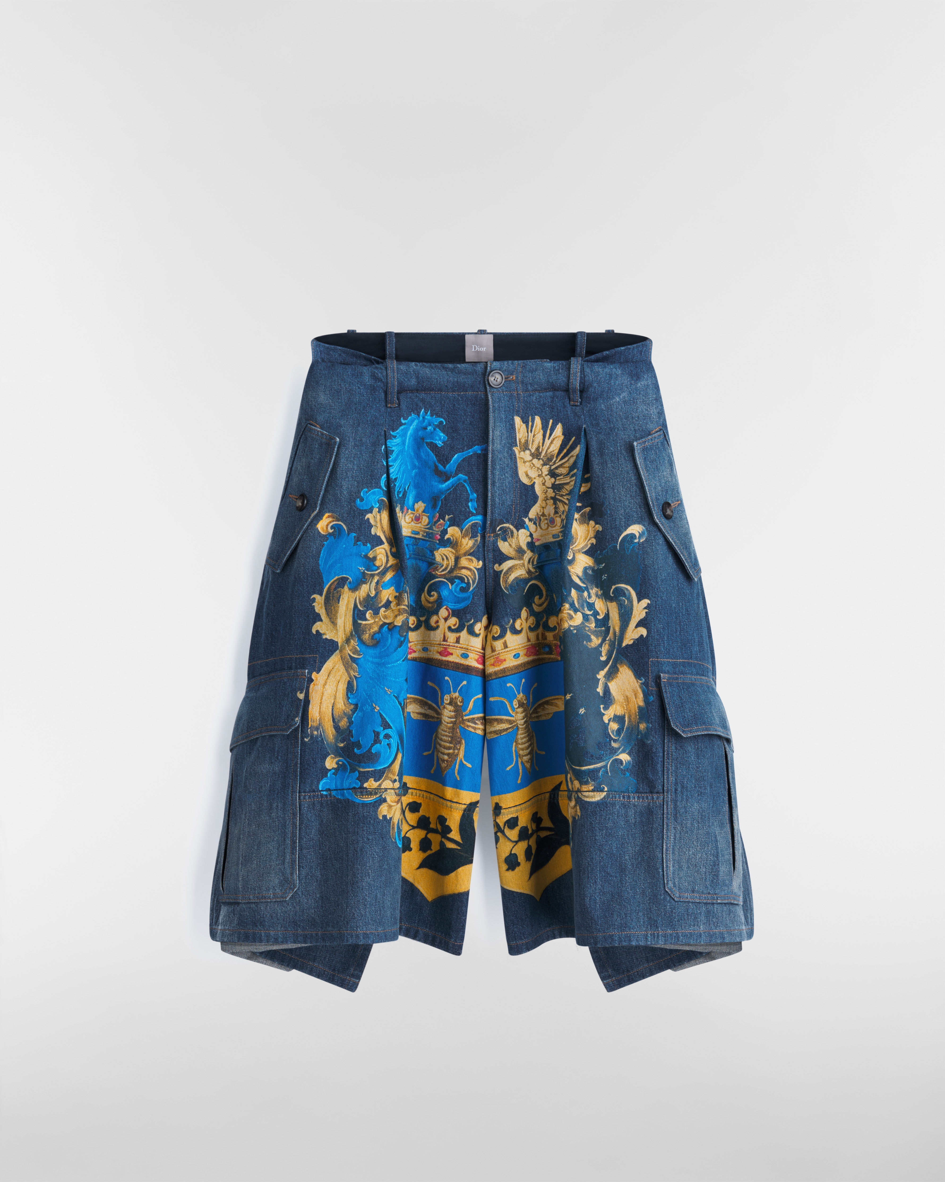 这款短裤饰以 Dior Blason 图案,通过乔纳森·安德森 (Jonathan Anderson) 精心设计的华丽盾形纹章焕新演绎 Dior 标识。采用蓝色棉质斜纹面料精心制作,背面饰以七米面料打造的褶裥细节。可搭配该系列的德比鞋穿着,打造时尚原创的精致造型。