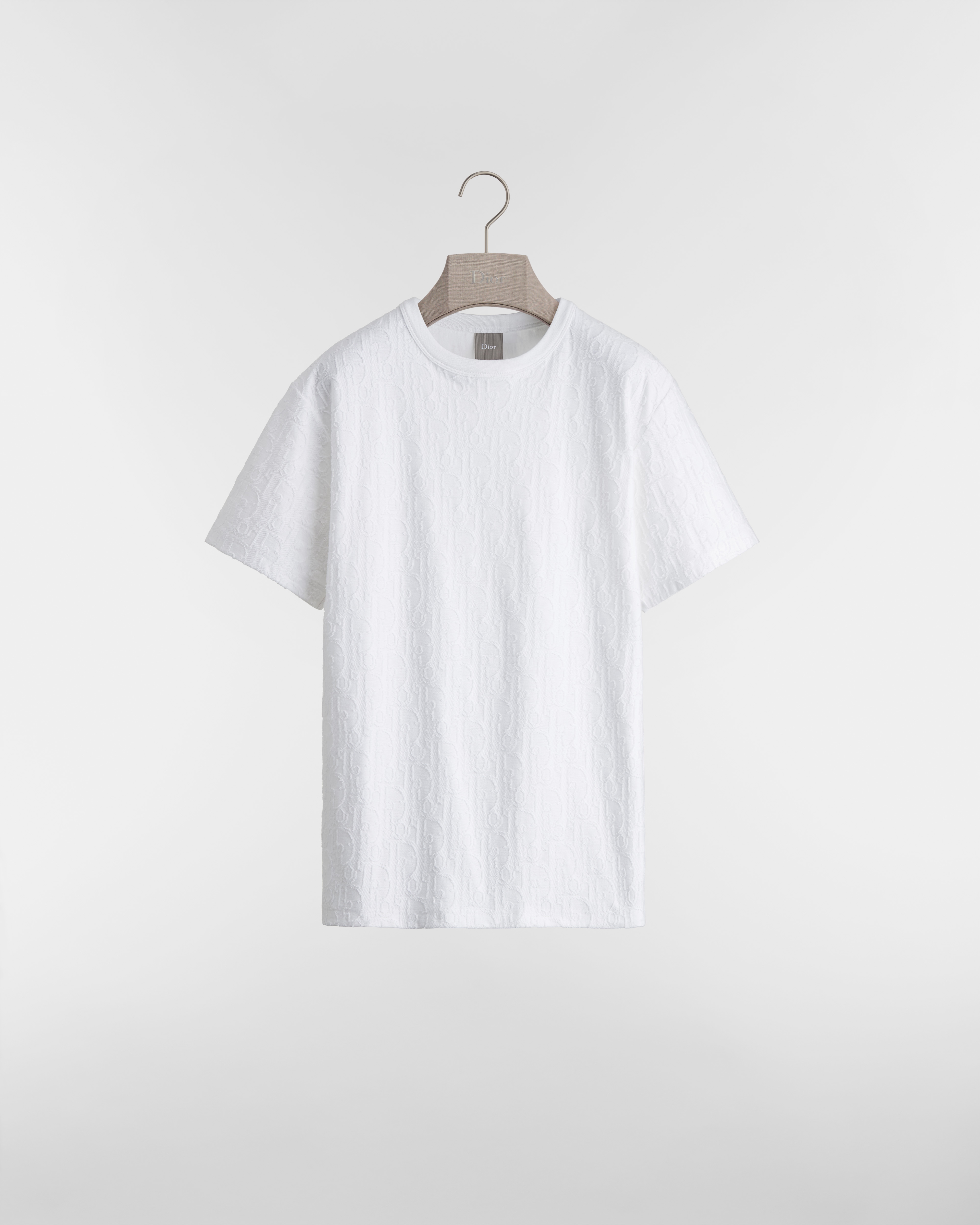 这款 T 恤以优雅纹理和同色调版本演绎 Dior 经典的 Oblique 印花。采用白色棉质平纹针织面料精心制作,通体饰以 3D 效果 Oblique 印花,别具一格。彰显丰富的纹理层次,可与该系列的各式牛仔裤搭配提升格调。