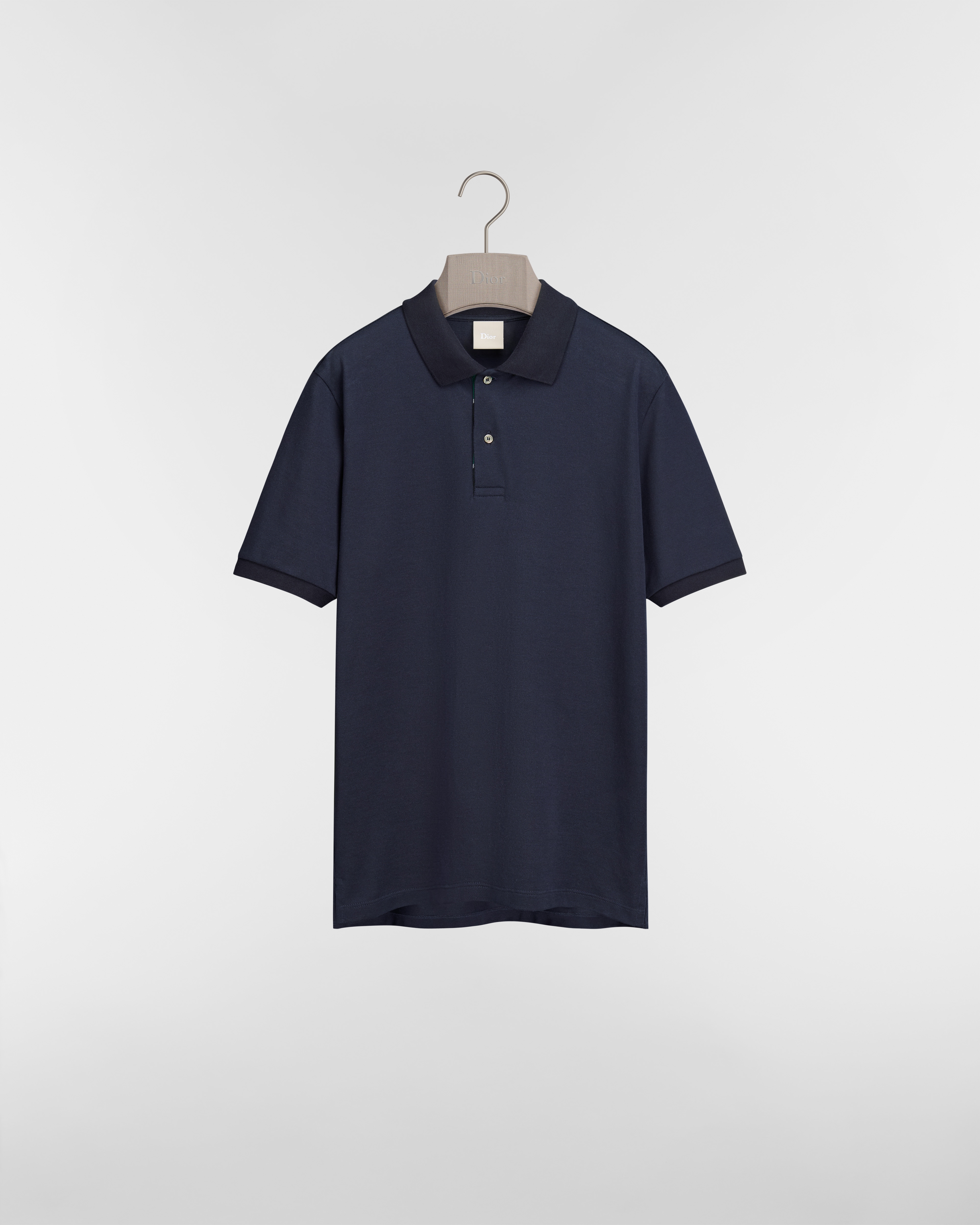 这款 Polo 衫致敬衣橱里的经典单品。采用蓝色棉质珠地布面料精心制作,纽扣门襟饰以黑色和绿色条纹 Dior Regimental 领带式细节。可敞开衣领穿着,打造灵感源自传统的现代造型。