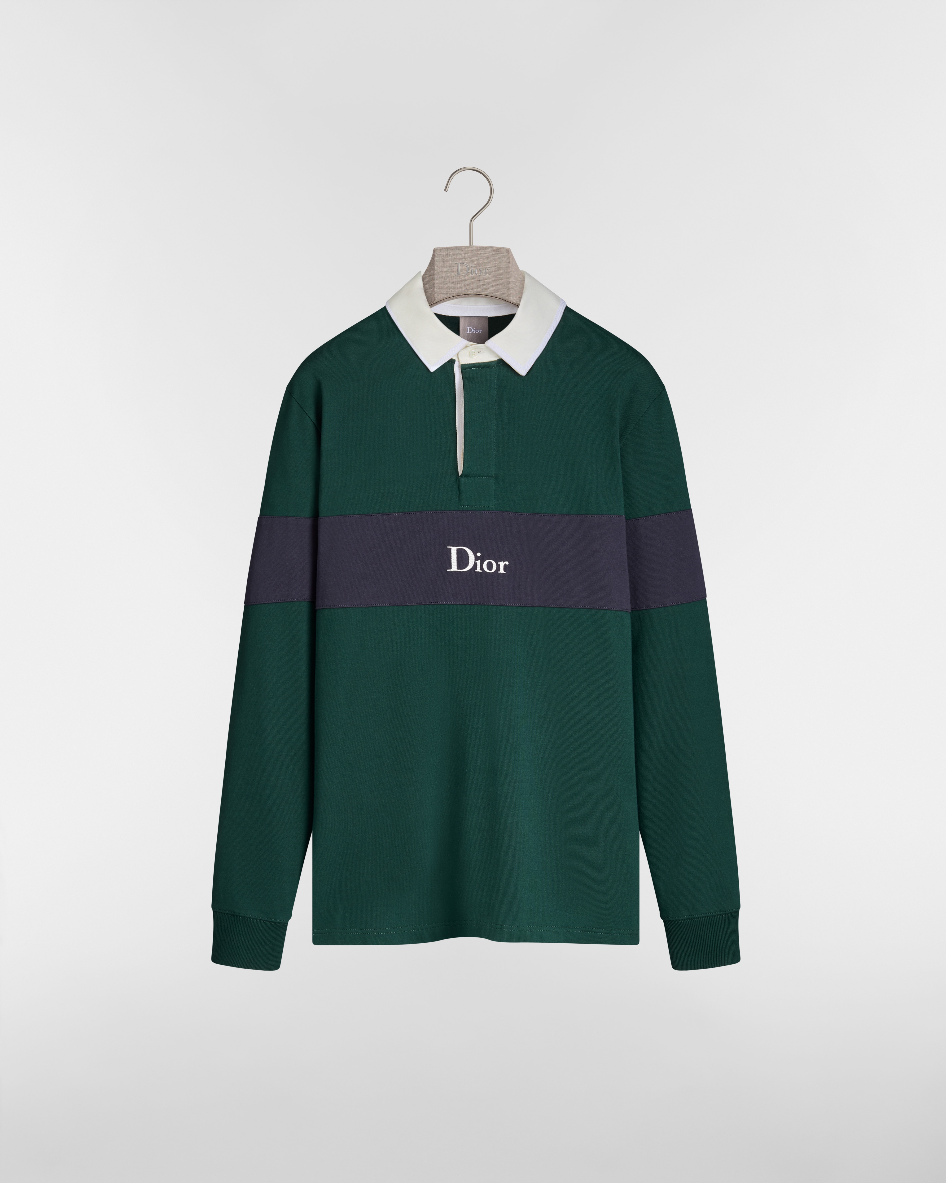 这款长袖 Polo 衫融入动感风格,重新诠释经典运动单品。采用绿色棉质平纹针织面料精心制作,白色衣领饰以 Dior 标志,胸前对比鲜明的条形图案饰以 Dior 刺绣,别具一格。可与该系列的短裤搭配穿着,打造精致时尚的运动服饰造型。