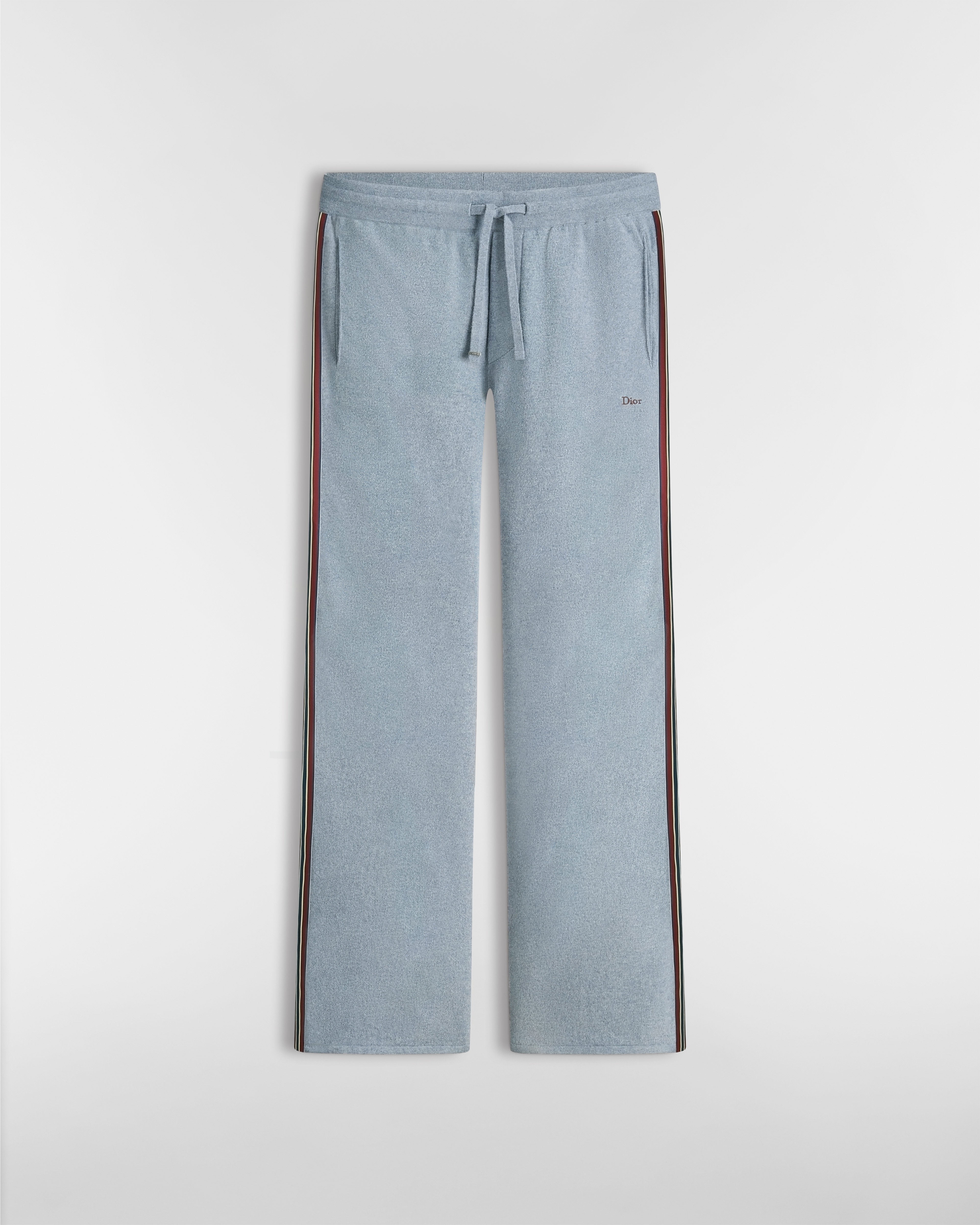 这款运动长裤将舒适与优雅气质巧妙融合。采用蓝色山羊绒和棉质混纺针织面料精心制作,裤腿饰以条纹饰带细节,口袋下方点缀以 Dior 刺绣。可与配套的 Polo 衫搭配,打造时尚的同色调造型。