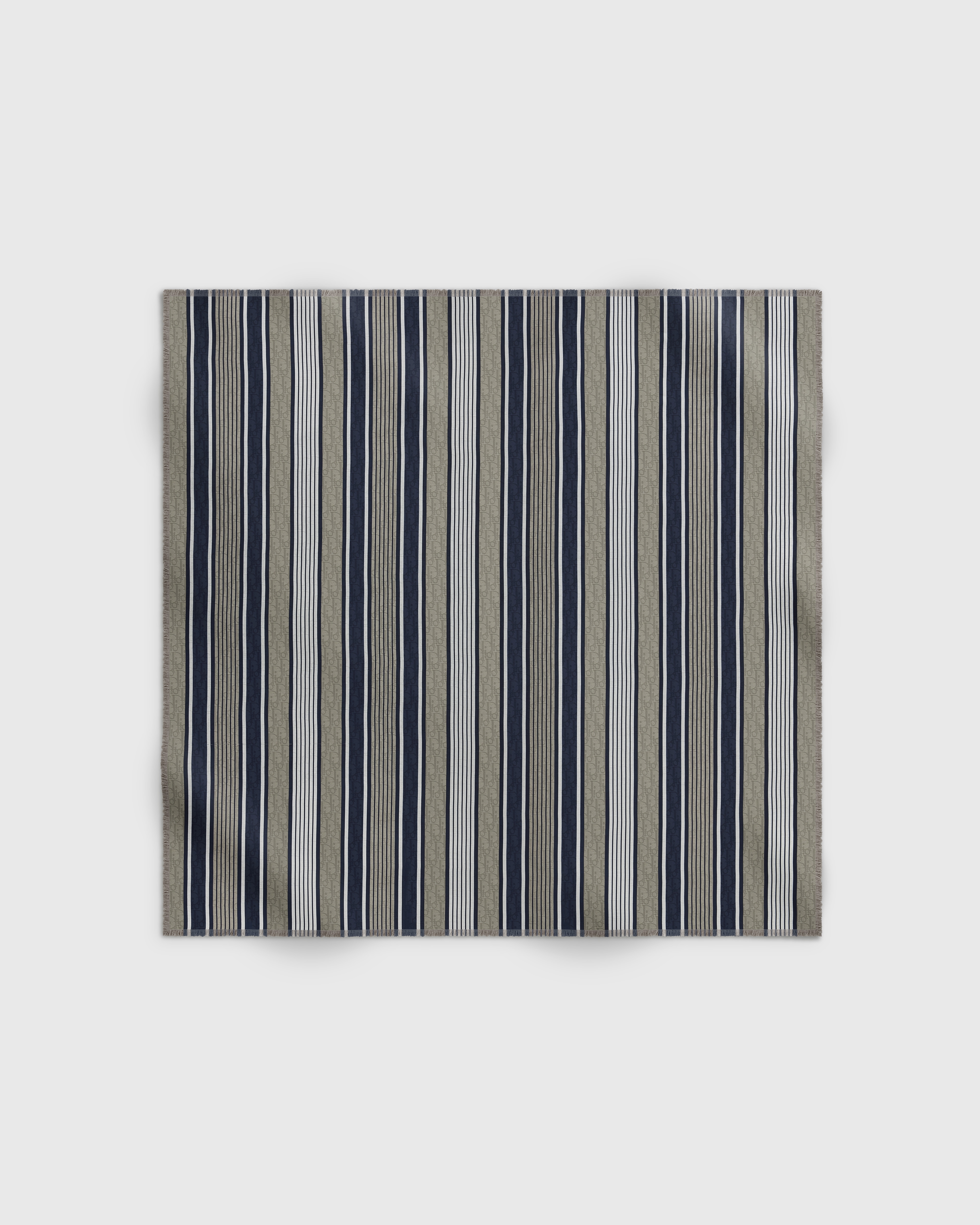 这款披肩来自 Dioriviera 限定系列,饰以 Dior Oblique Sun Stripes 图案。以灰色和蓝色棉质和桑蚕丝混纺条纹诠释 Dior 经典图案,彰显 Dior 工坊非凡的精湛工艺,同时也体现乔纳森·安德森 (Jonathan Anderson) 的现代视角。可系在颈部或披在肩部。