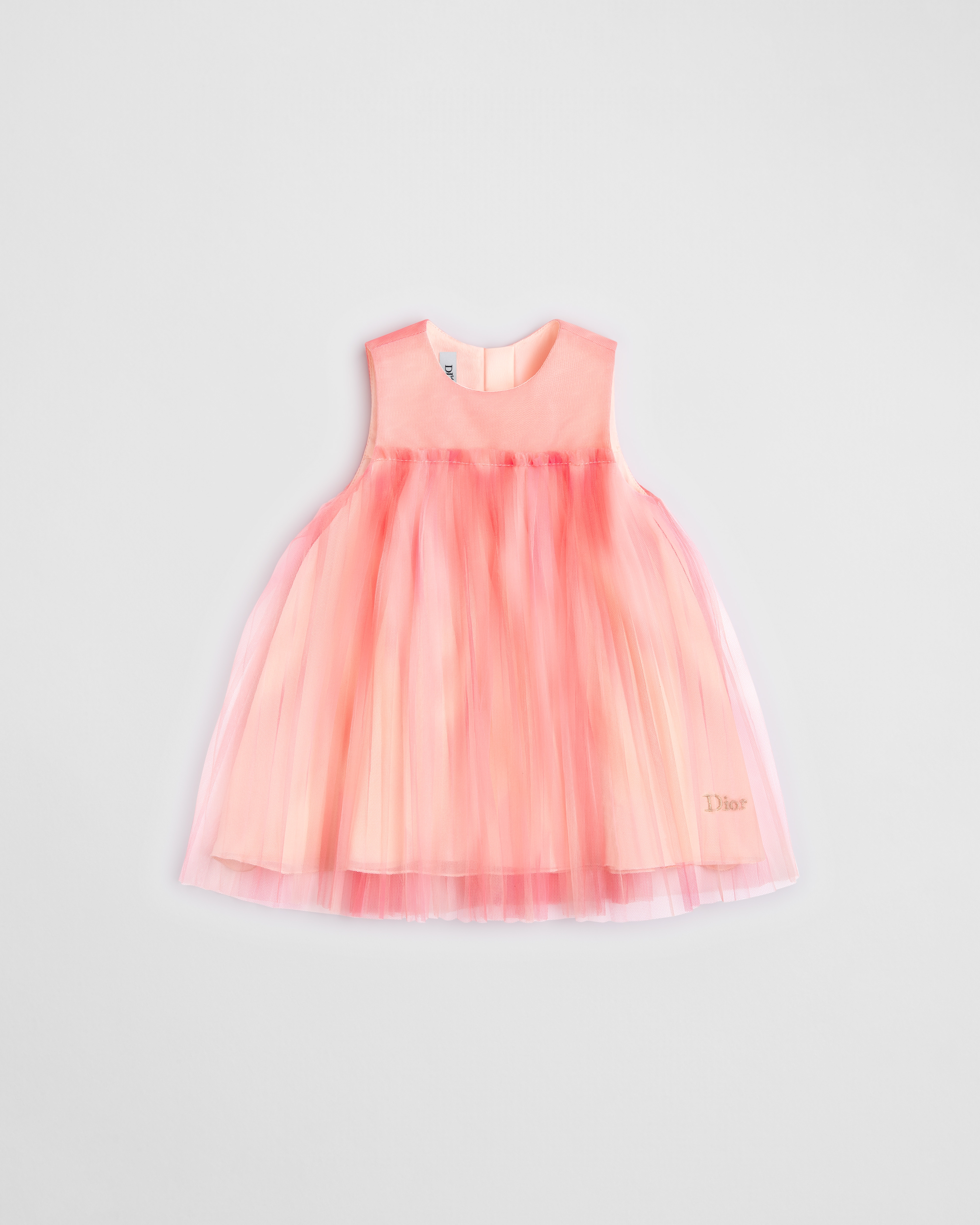 这款连衣裙以充满趣味的色彩彰显精致造型。采用多重粉色调薄纱面料精心制作,饰以精美褶裥,别具一格。背面带有拉链开合,搭配镌刻有小蜜蜂标识的珠光纽扣。下摆饰以金色调 Dior 标志刺绣提升格调,廓形飘逸灵动,可与该系列的凉鞋搭配,打造清新的夏日造型。