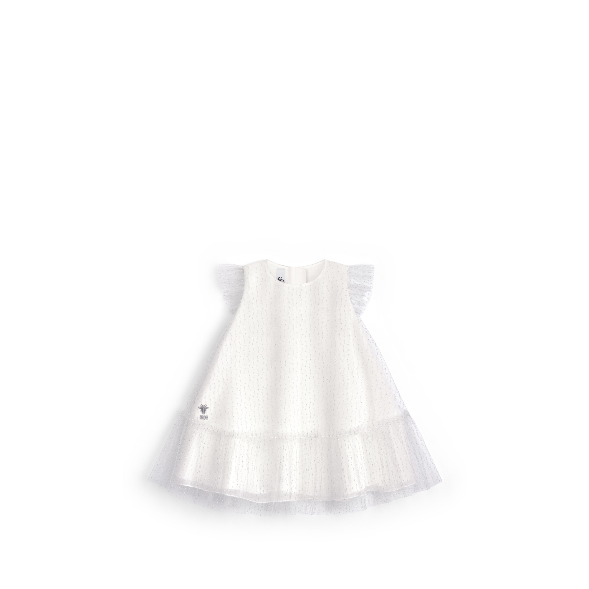 右侧底部饰以银色金属光泽线小蜜蜂刺绣