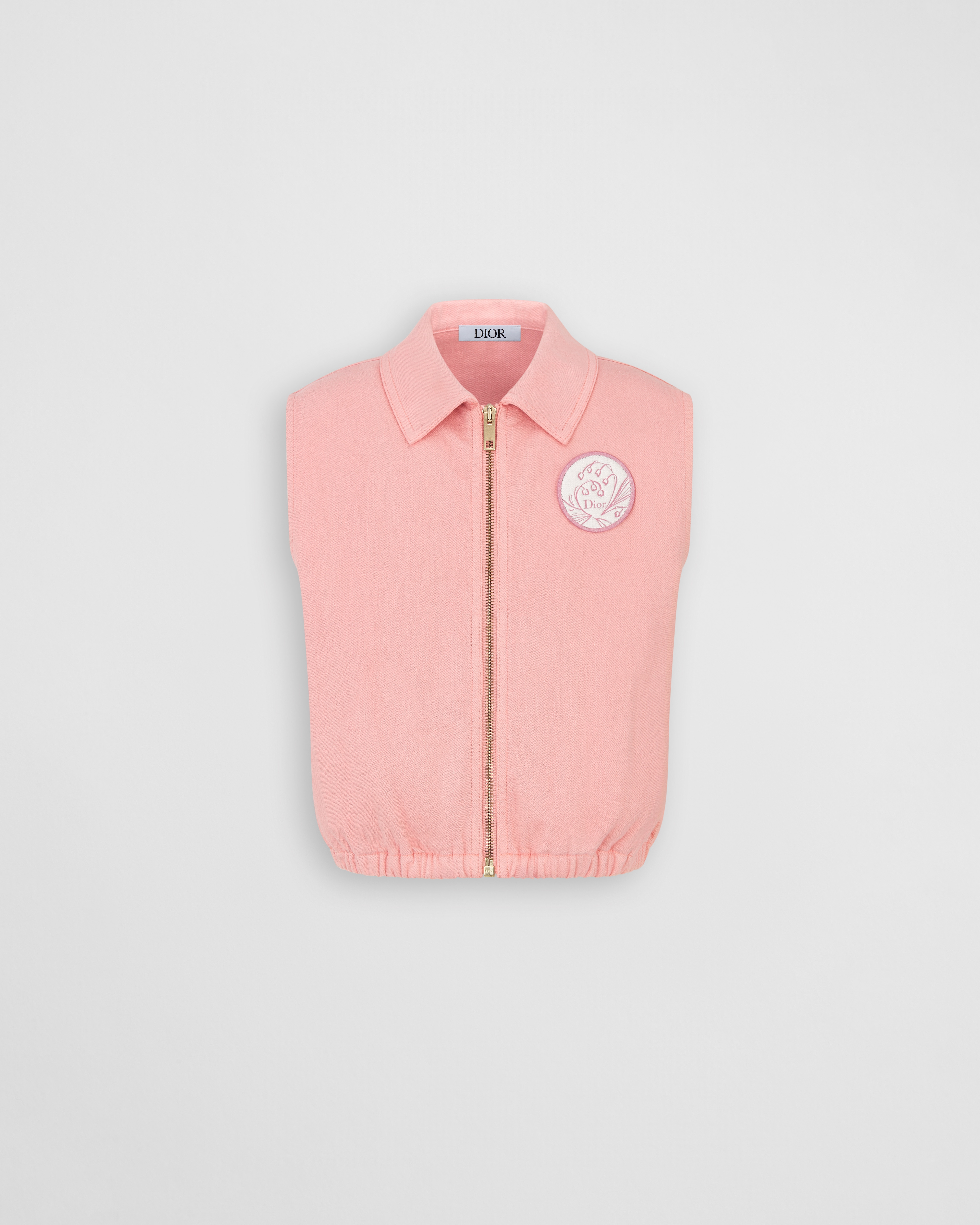 正面左侧饰以粉色和象牙色凸印和刺绣 Dior 铃兰补丁