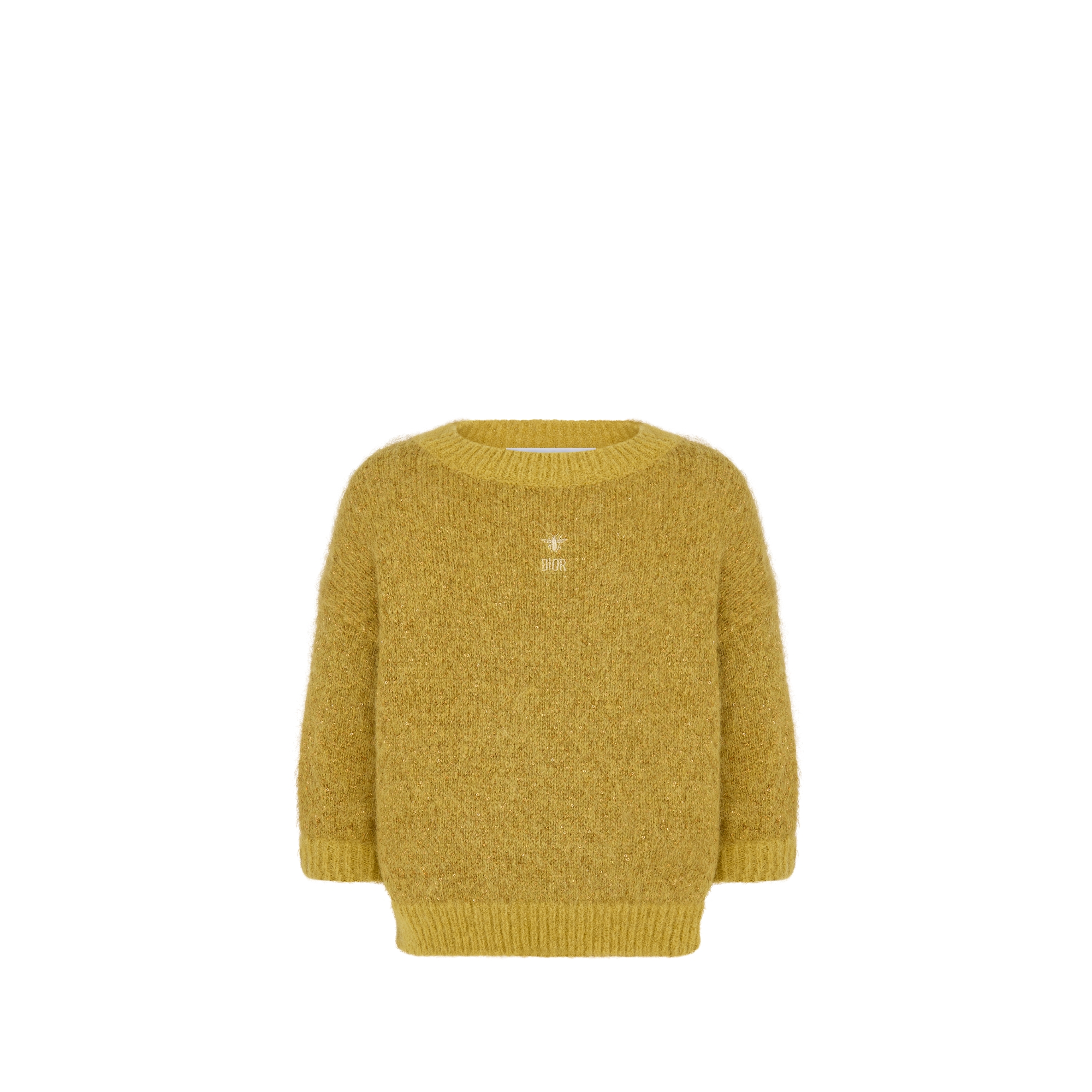 黄赭色羊驼毛混纺针织面料金色调亮片装饰