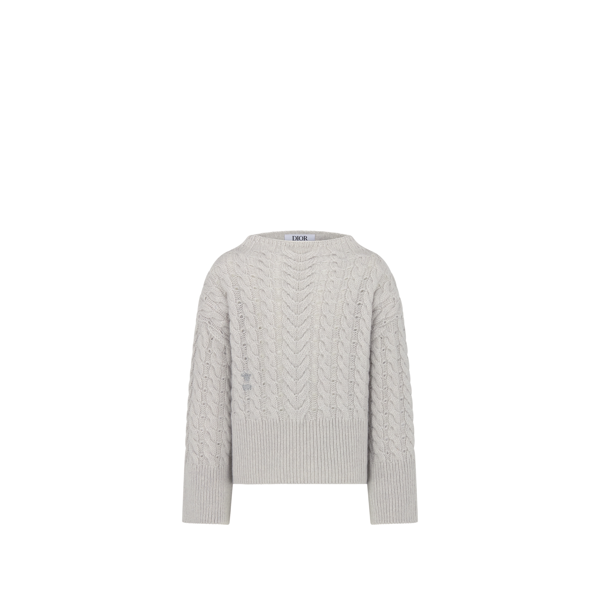 这款针织衫是二零二六春季童装系列新品,融入精致的绞花针织设计,别具一格。采用灰色山羊绒织物精心制作,宽松剪裁搭配船领和底边开衩,更显精致。罗纹饰边更添舒适,底部饰以银色调小蜜蜂刺绣。质感柔软,可与该系列的半身裙或长裤轻松搭配,打造高雅的造型。