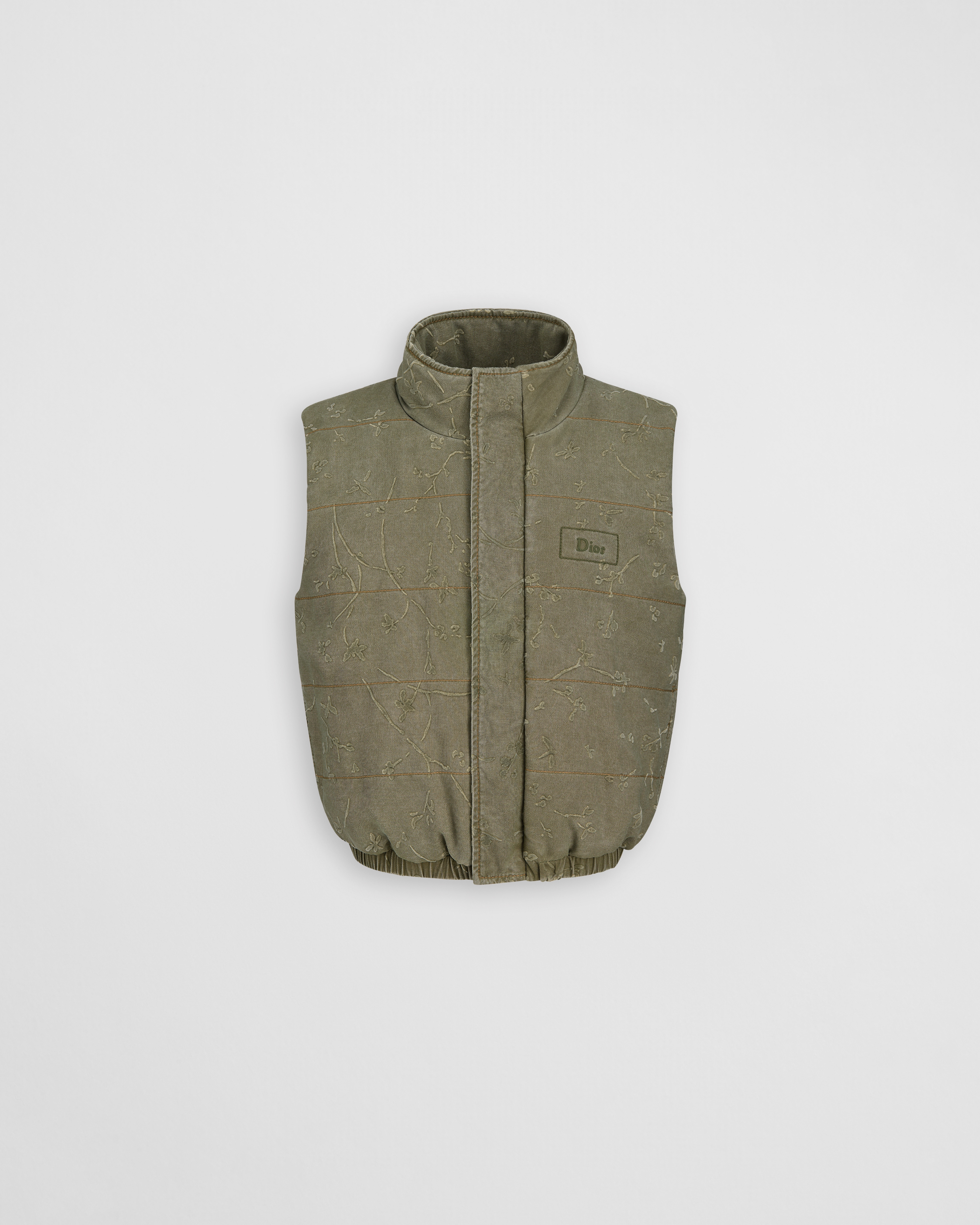 这款背心是二零二六夏季童装系列新品,饰以灵感源自大自然的本季图案。采用卡其色科技面料精心制作,突显同色调植绒牛仔效果,正面饰以同色调 Dior 刺绣。正面隐藏式拉链开合,搭配立领、弹力底边和接缝口袋,更显精致。具备防水效果,可与该系列的配套长裤搭配,为凉爽天气打造活泼的造型。
