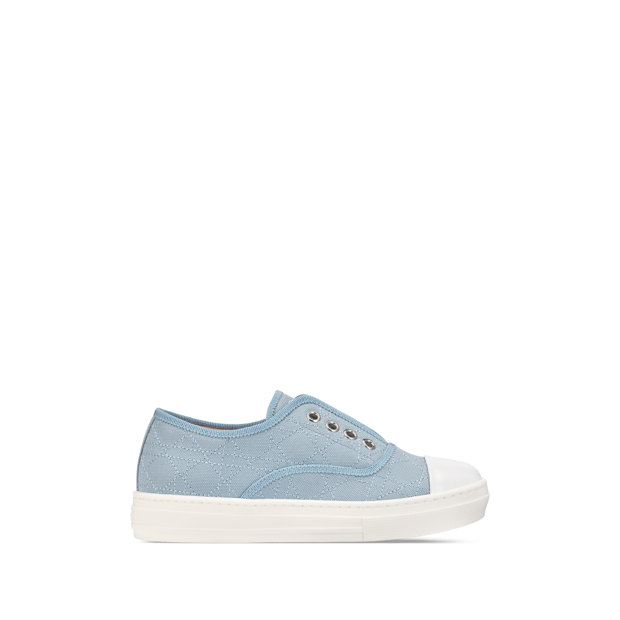 淡紫蓝色棉质帆布和白色牛皮革藤格纹
