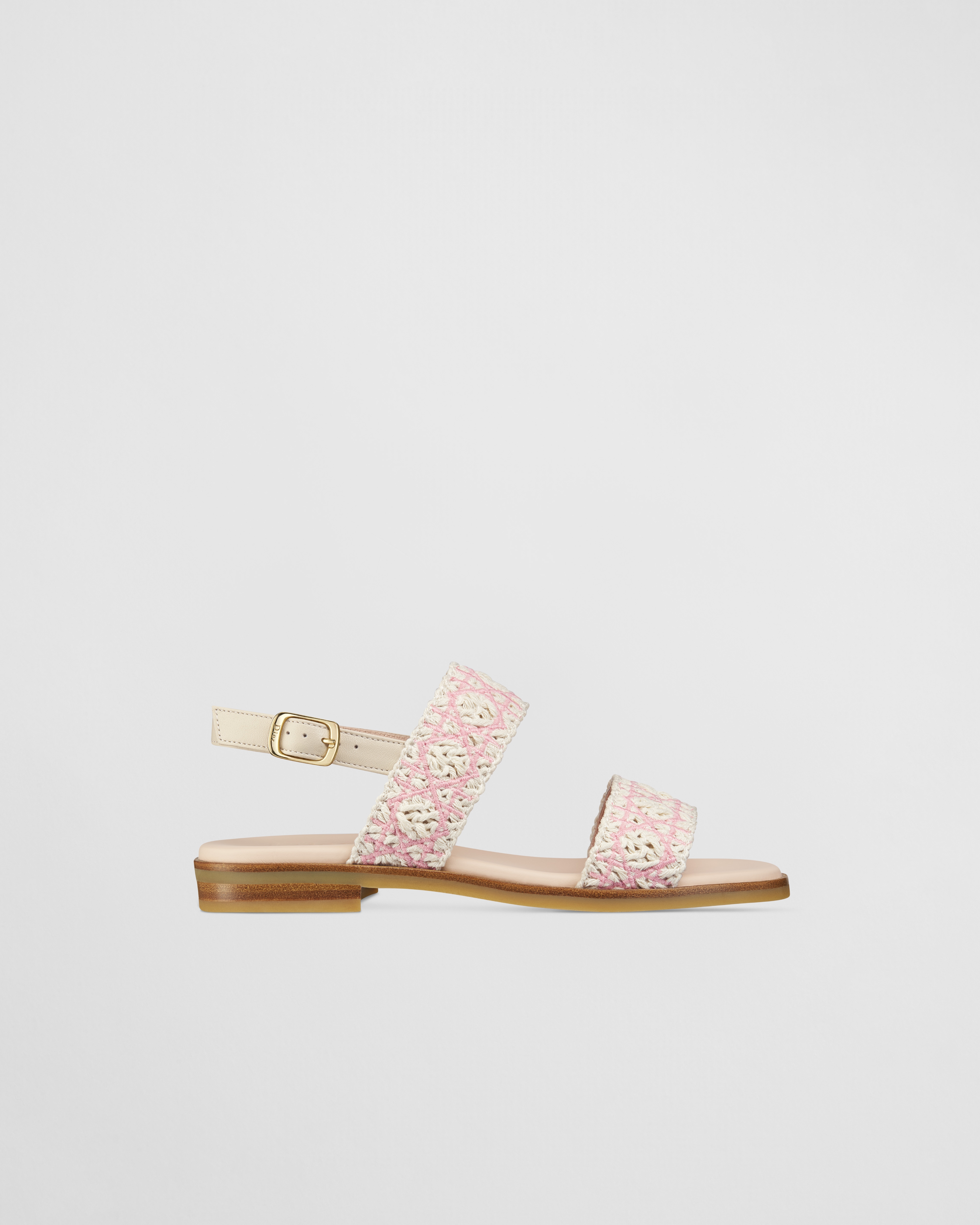 这款凉鞋饰以经典的藤格纹图案,致敬 Dior 传承。采用象牙色酒椰草效果棉质帆布精心制作,饰以淡粉色线刺绣,精美迷人。搭配带有金属扣的皮革后侧系带,可轻松搭配该系列的各式服饰,打造愉悦活泼的造型。