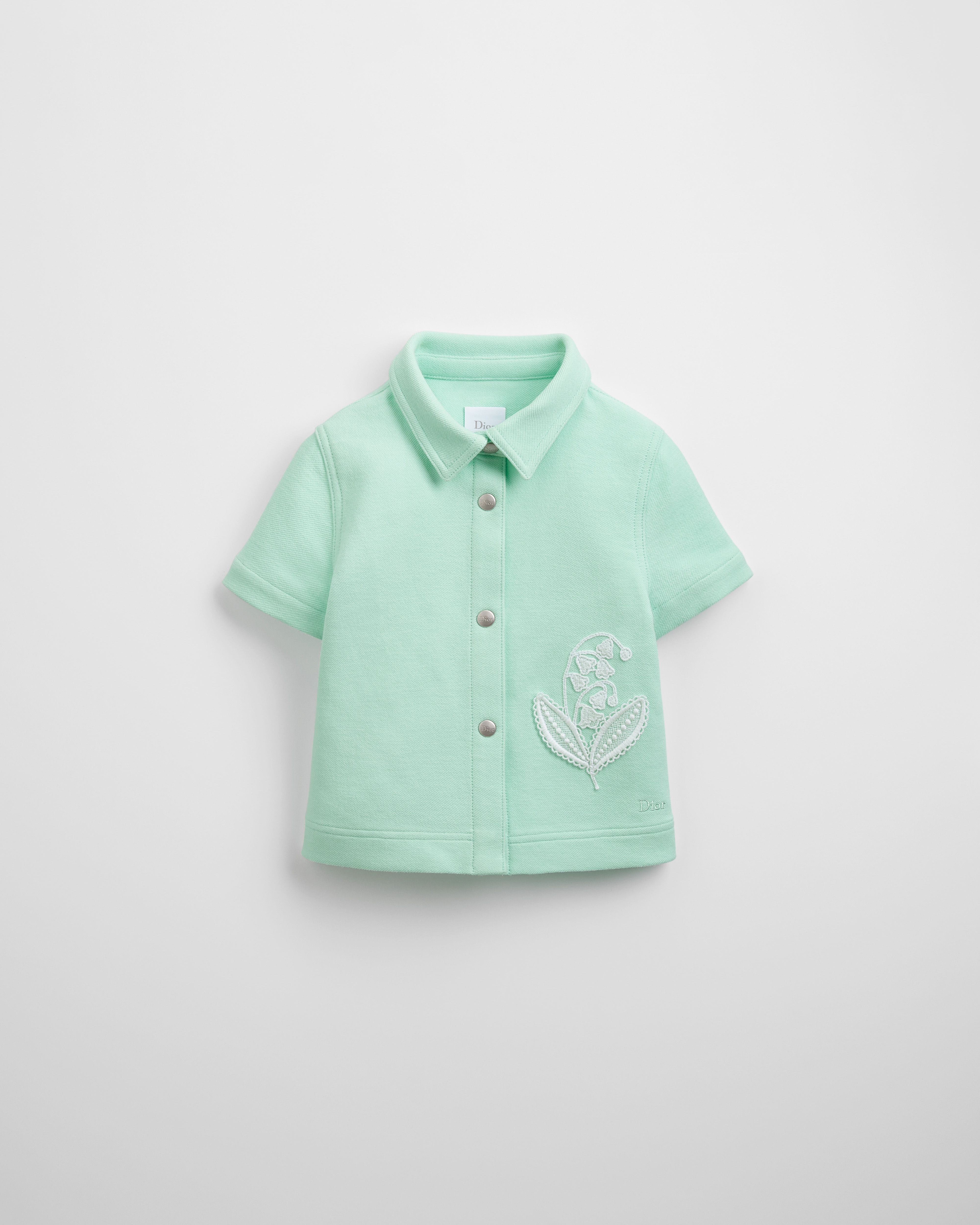 这款上衣彰显清新而充满活力的美学。采用薄荷绿棉质牛仔布精心制作,饰以镂空和缉面线铃兰补丁,下摆缀以 Dior 标志刺绣提升格调。搭配按扣开合和经典衣领更显精致,可与该系列的配套半身裙搭配,打造愉悦活泼的造型。