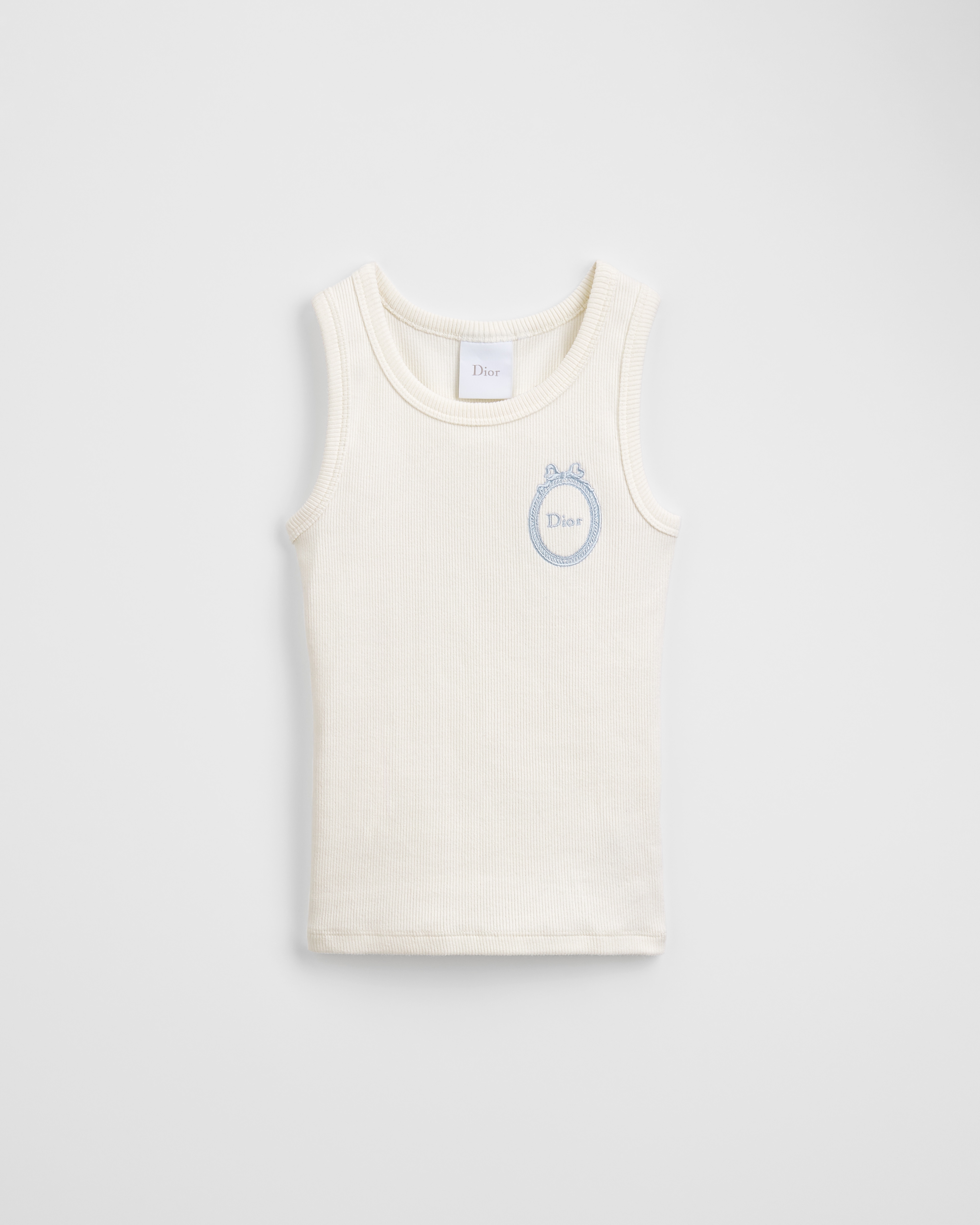 正面左侧饰以蓝色 Dior Médaillon 标志刺绣